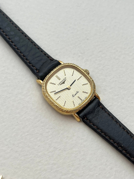 Longines Gold Cushion Womens Watch With Textured Bezel