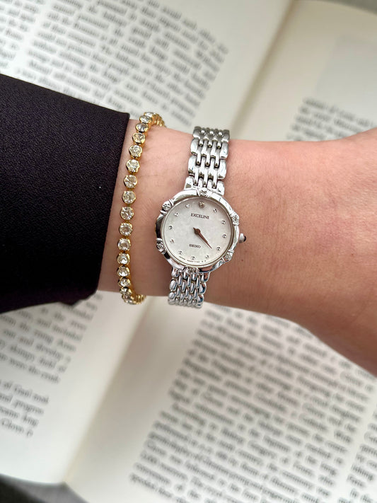 Seiko Exceline Woman's Watch with Diamonds and Sculpted Pattern Bracelet