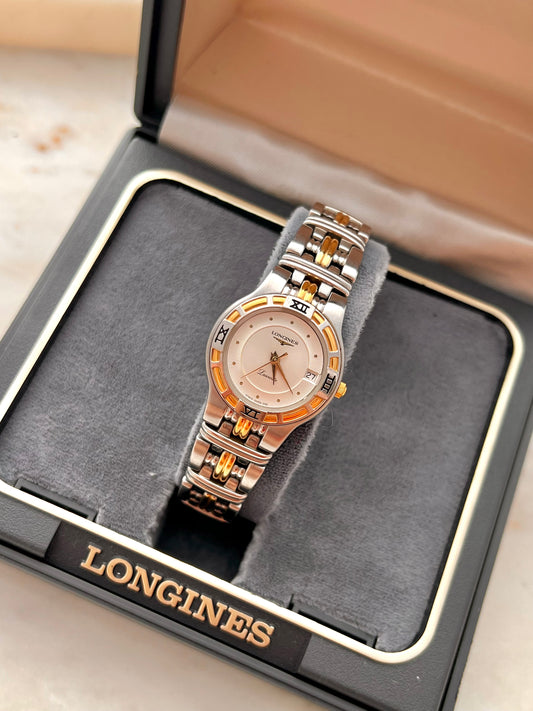 Longines Laureate Two Tone Date Watch with Roman Bezel and Integrated Bracelet