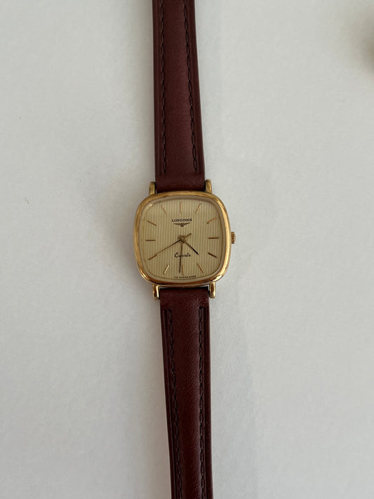 Longines Gold Toned Cushion Case Stripe Dial Woman's Watch