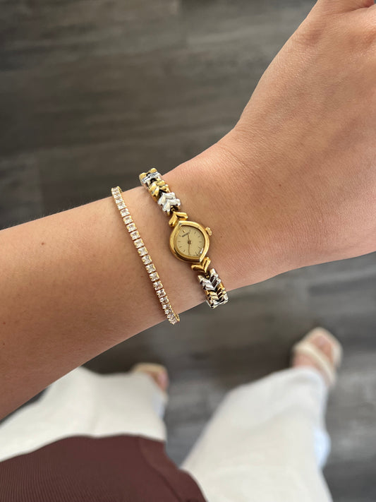Seiko Tisse Tear Drop Watch with Two-Tone Leaf-Link Bracelet