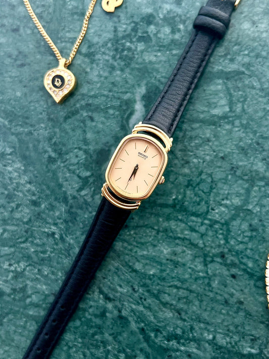 Seiko Gold Tone Oval Watch with Twin Ring Lugs