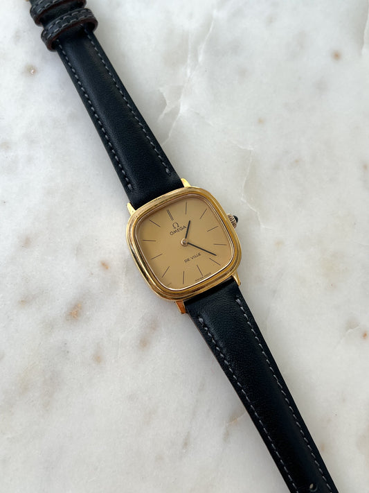 Omega De Ville Gold Ladies’ Watch on Classy Black Strap