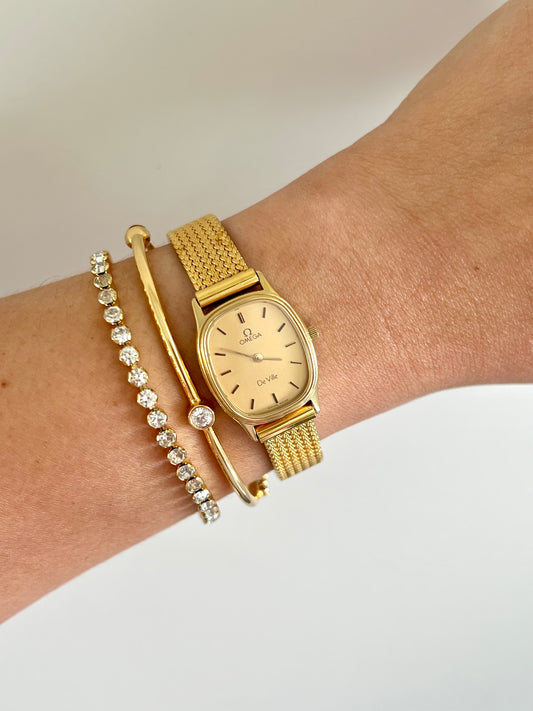Omega De Ville Oblong Womens Watch with Gold Mesh Bracelet