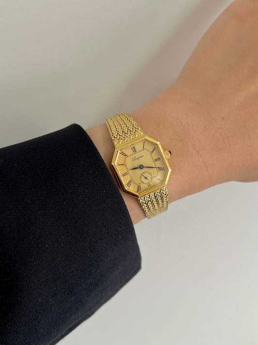 Longines Gold Tone Octagonal Women's Watch with Mesh Bracelet