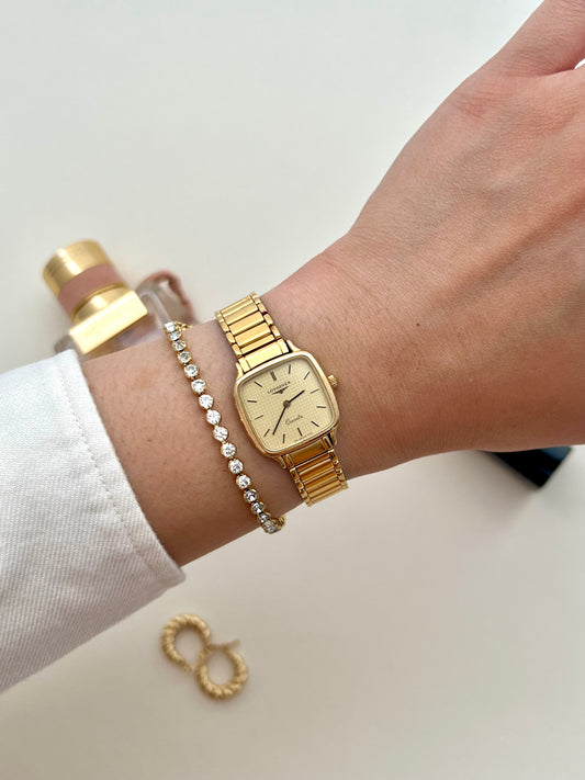 Longines Soft Square Gold Bracelet Women’s Watch Waffle Dial