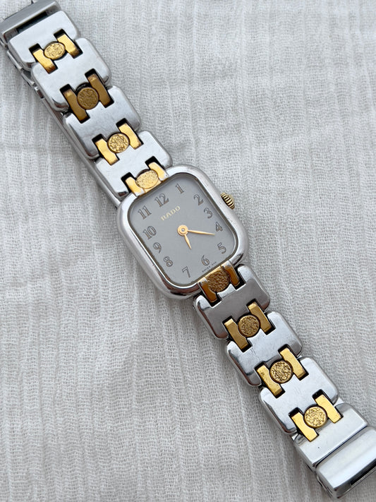 Rado Ladies Two Tone Bracelet Watch with Silver Dial and Gold Accents