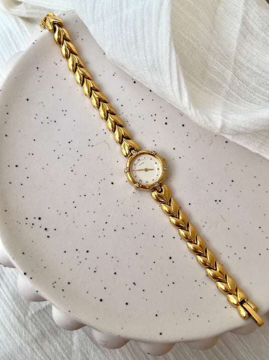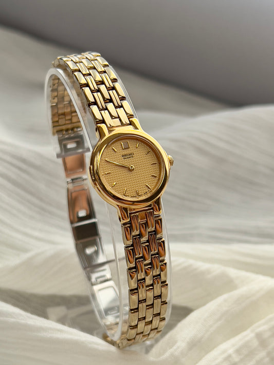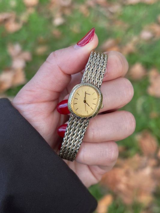 Seiko Gold Toned Oval Watch with a Wreath Textured Case
