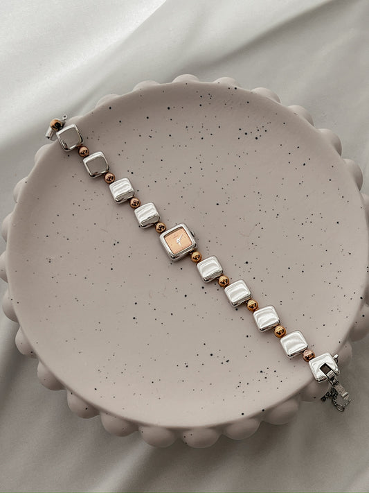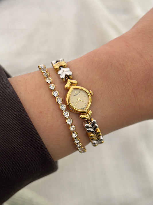 Seiko Square Casual Watch with Cute Two Tone Bracelet