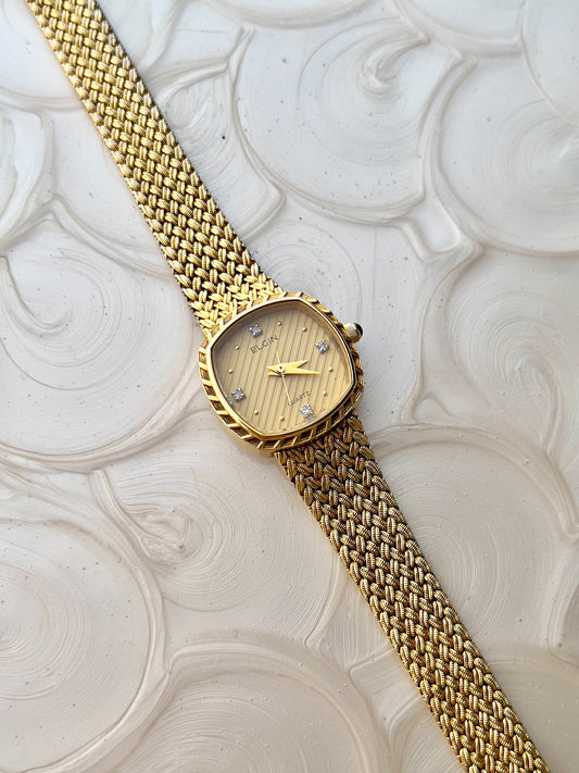 Elgin Gold Toned Square Woman's Watch with Crystal Accent