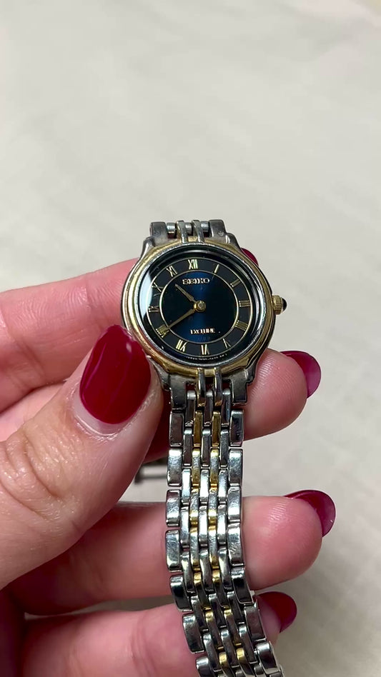 Seiko Exceline Two-Tone Woman’s Watch – Deep Blue & Gold Roman Dial