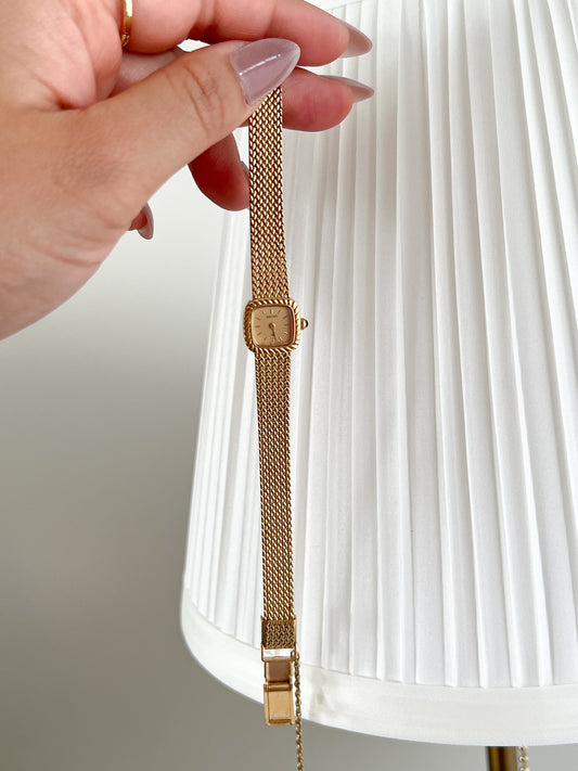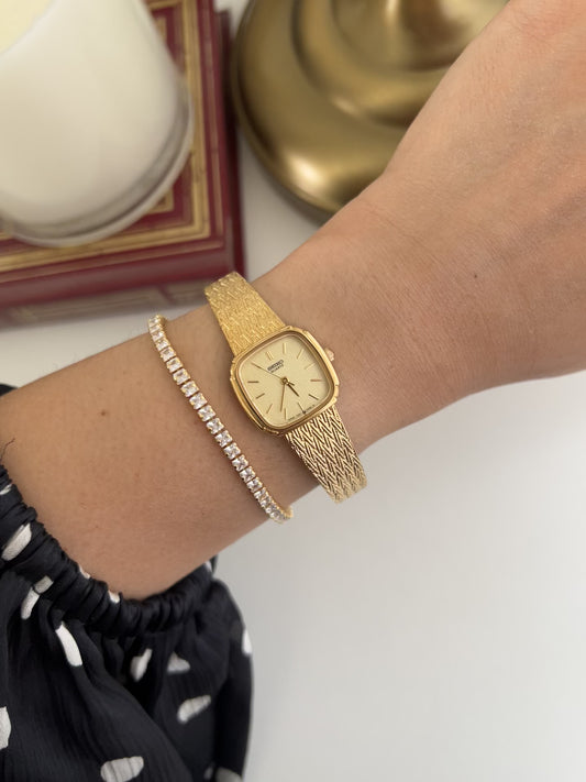Seiko Gold Cushion Women's Watch with Textured Bracelet