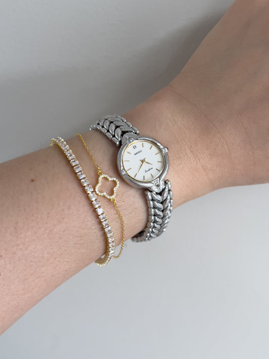 Seiko Exceline Woman's Watch with Diamonds and Sculpted Pattern BraceletRegular price $180.00 NZDRegular priceUnit price / per-