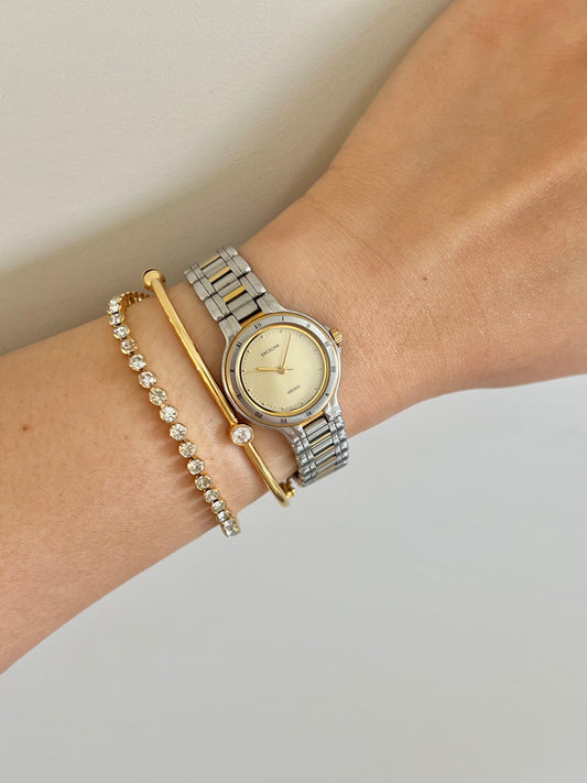 Seiko Exceline Two Tone Piece with Integrated Basketweave Bracelet