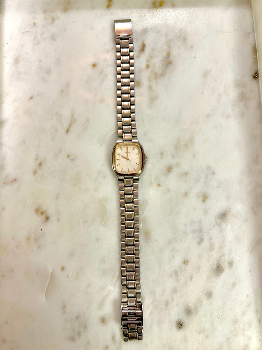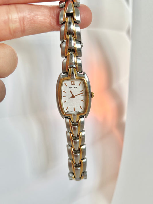Seiko Soft Rectangular Two Toned Woman's Watch with Linen Textured Dial