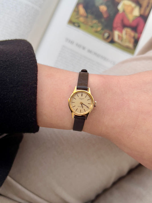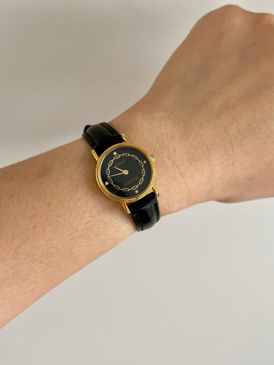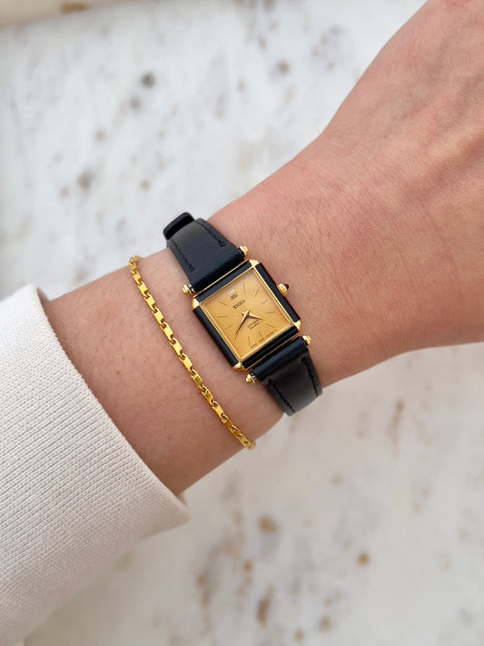 Nina Ricci x Seiko Ladies Vintage Watch – Gold Case, Crystal Accents, Black Leather Strap