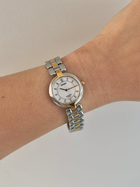 Seiko Exceline Bold Two Tone Woman's Watch with Pearl Dial