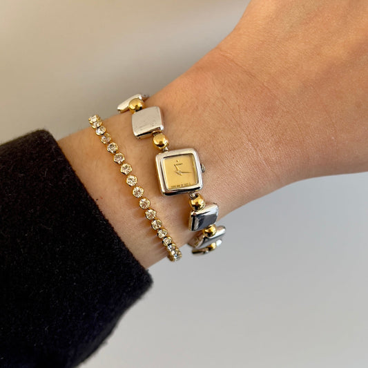 Seiko Mini Squares Woman's Watch with Two Toned Bracelet