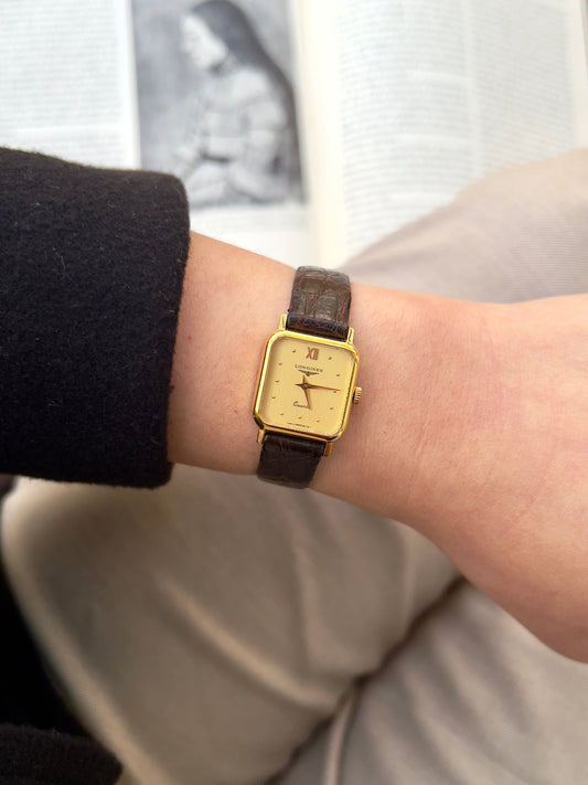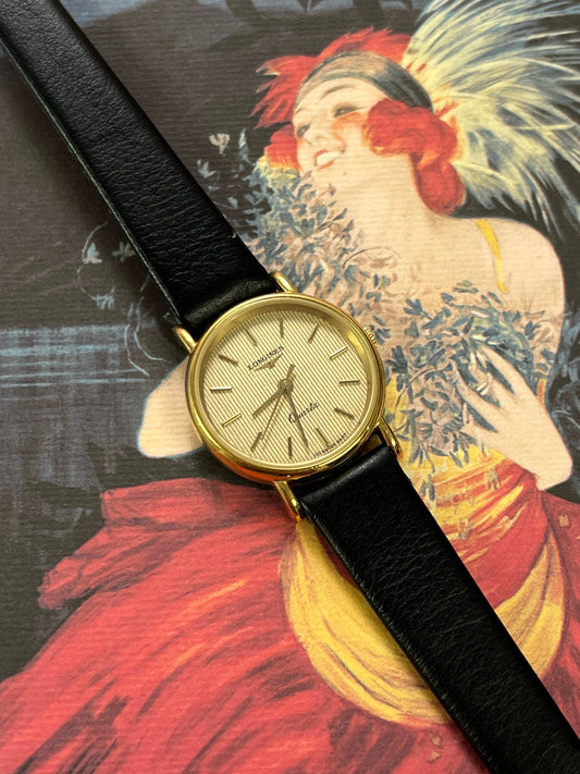 Longines Vintage Gold Women’s Watch with Textured Dial and Leather Strap