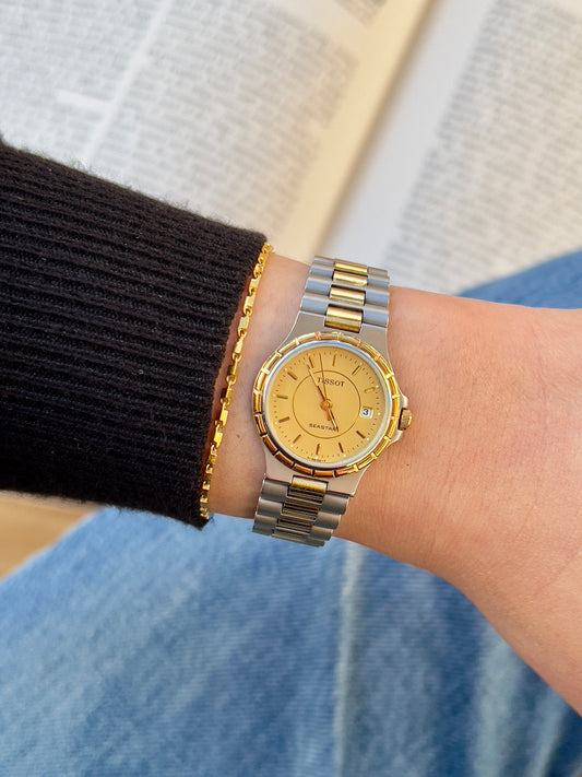 Tissot Seastar Two-Tone Watch with Sunburst Gold Dial and Date