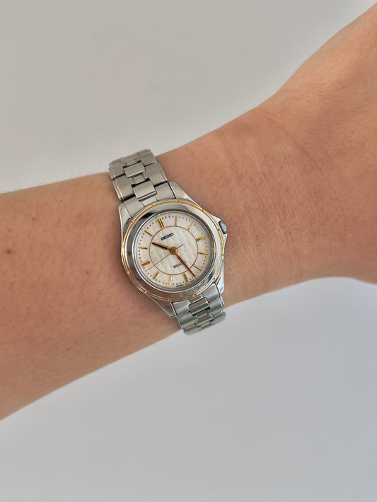 Seiko Lucent Woman's Watch with a Pink Pearlescent Dial
