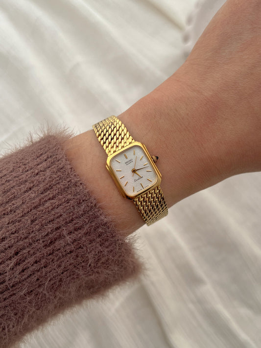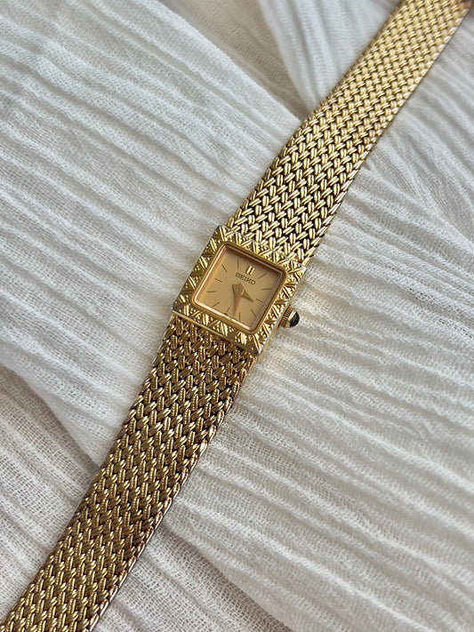 Seiko Unique Dainty Gold Bracelet Watch with Square Dial