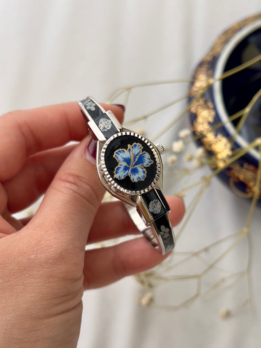 Andre Mouché Rose White Blue Black Enamel Peek A Boo Watch