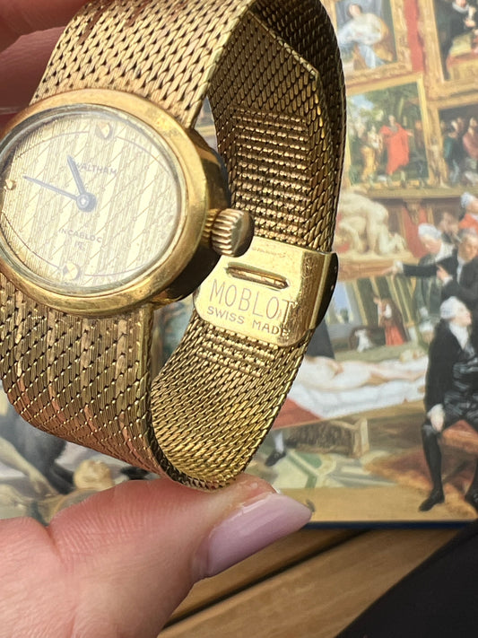 Waltham Vintage Gold Ladies’ Watch with Textured Dial & Mesh BraceletRegular price $150.00 NZDRegular priceUnit price / per-