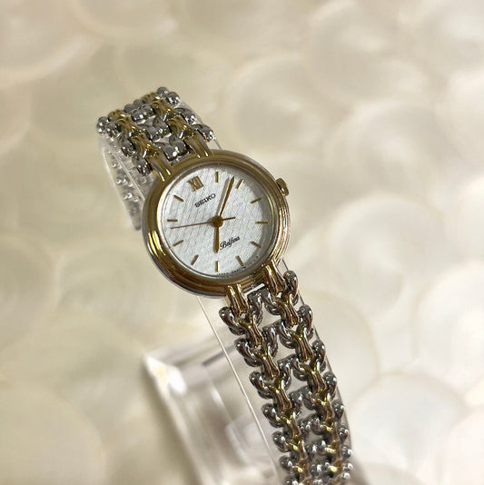 Seiko Belfina Two Tone Ladies Watch with Intricate BraceletRegular price $140.00 NZDRegular priceUnit price / per-