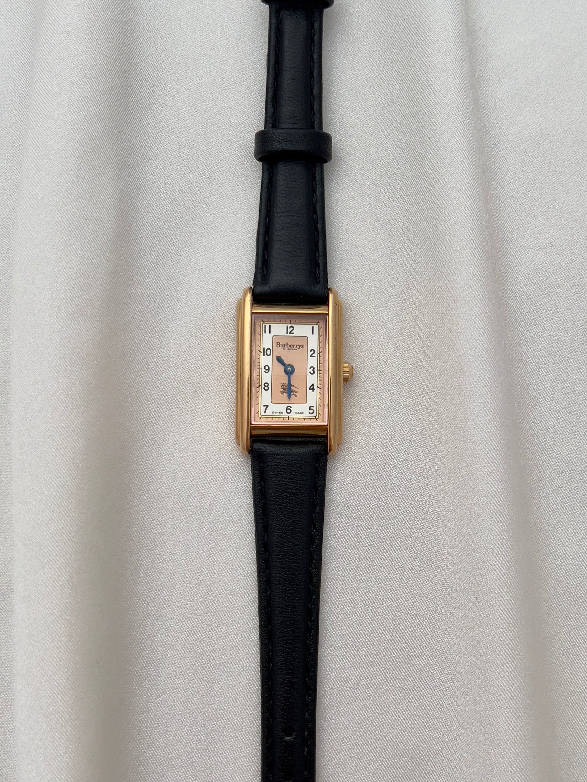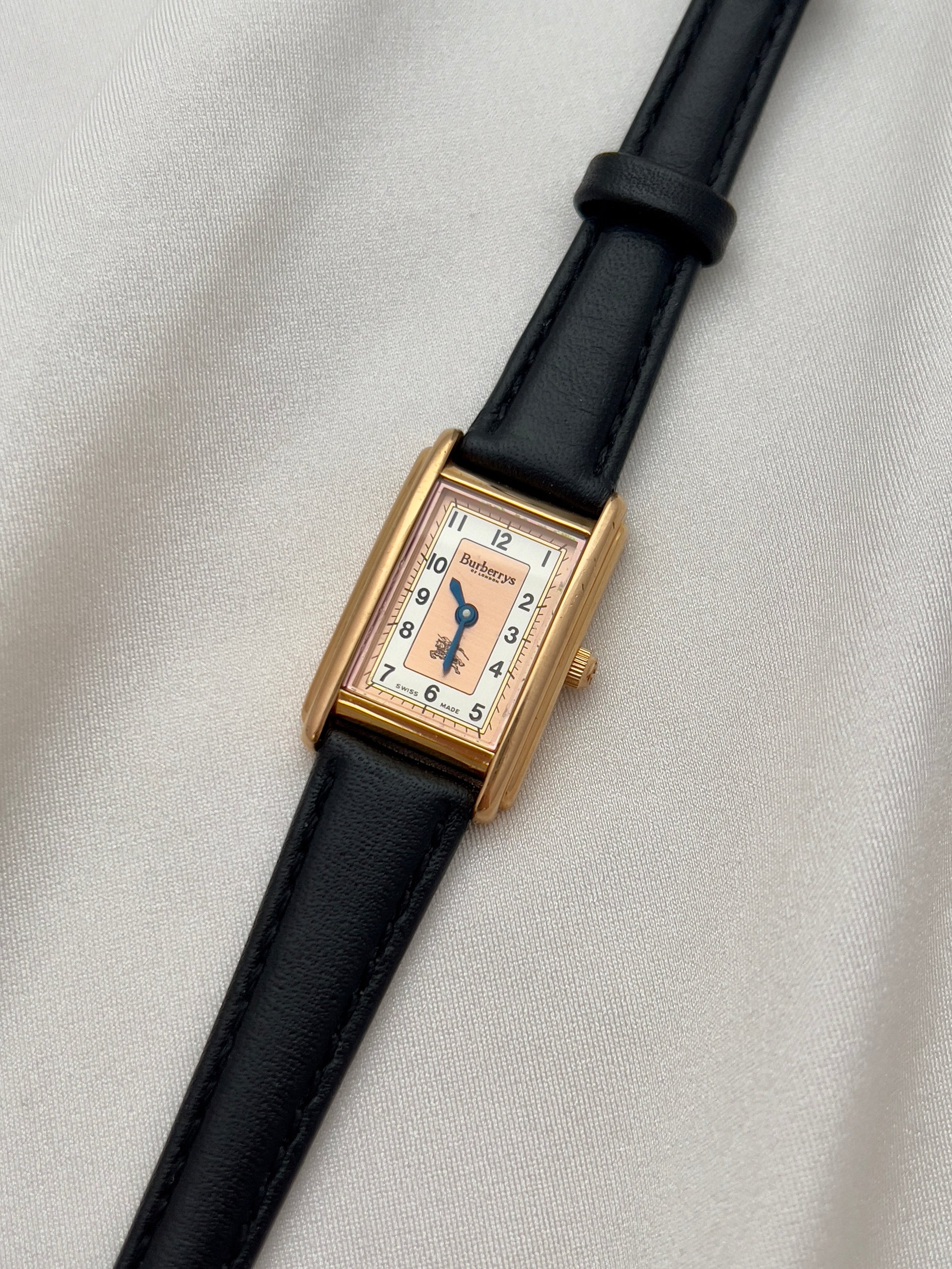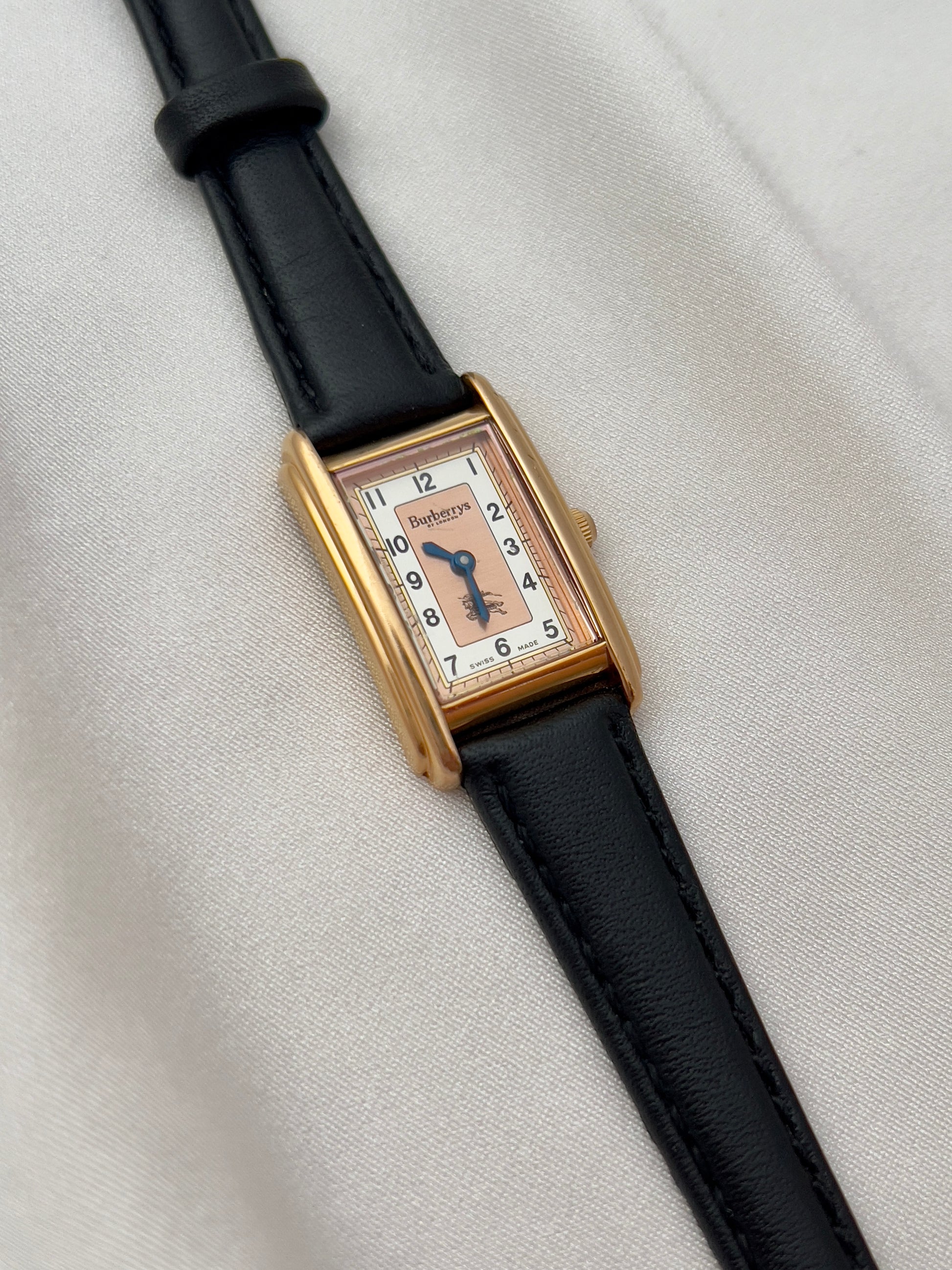Burberrys Ladies Tank Watch – Blued Hands & Pink-White Dial
