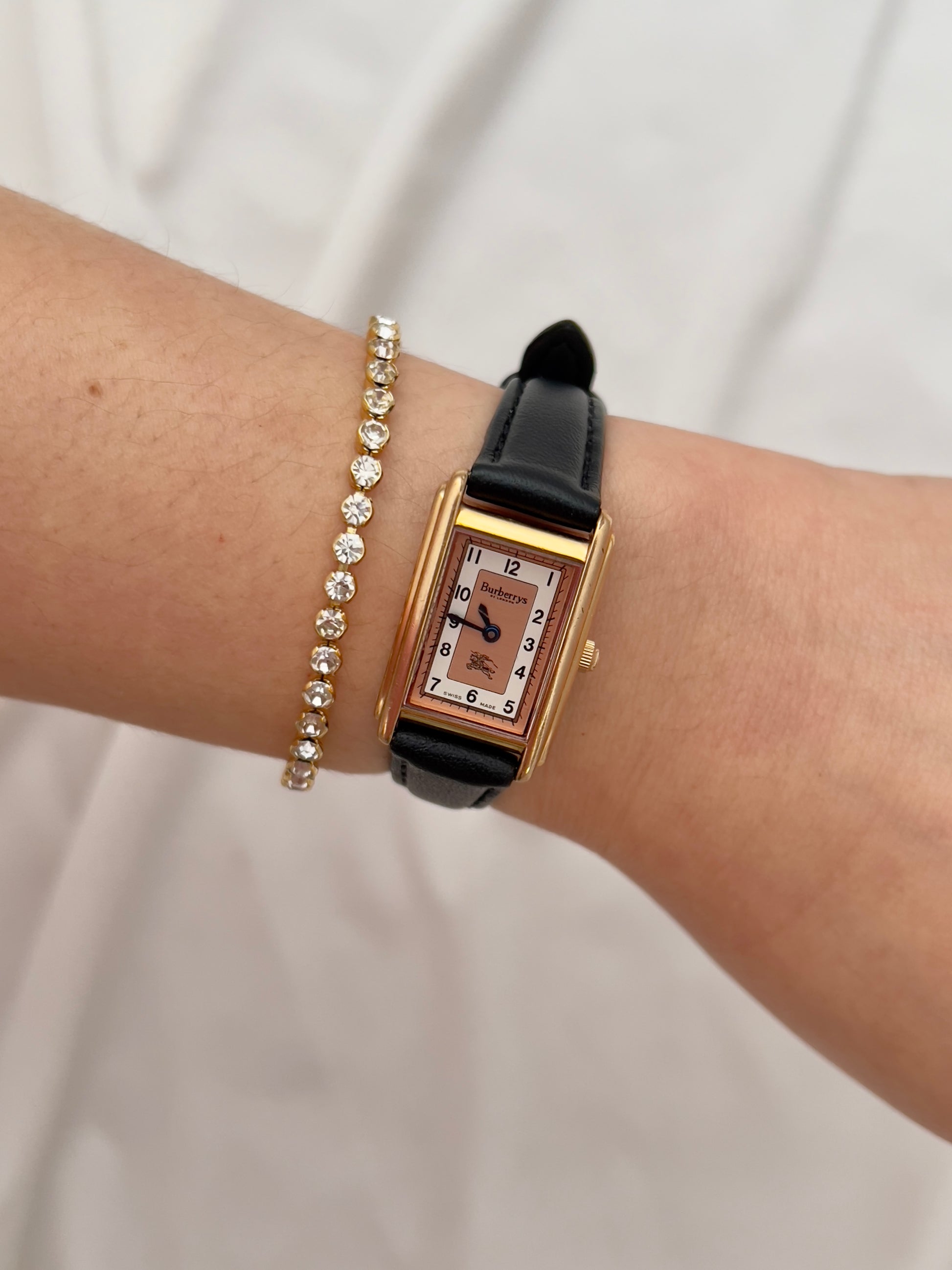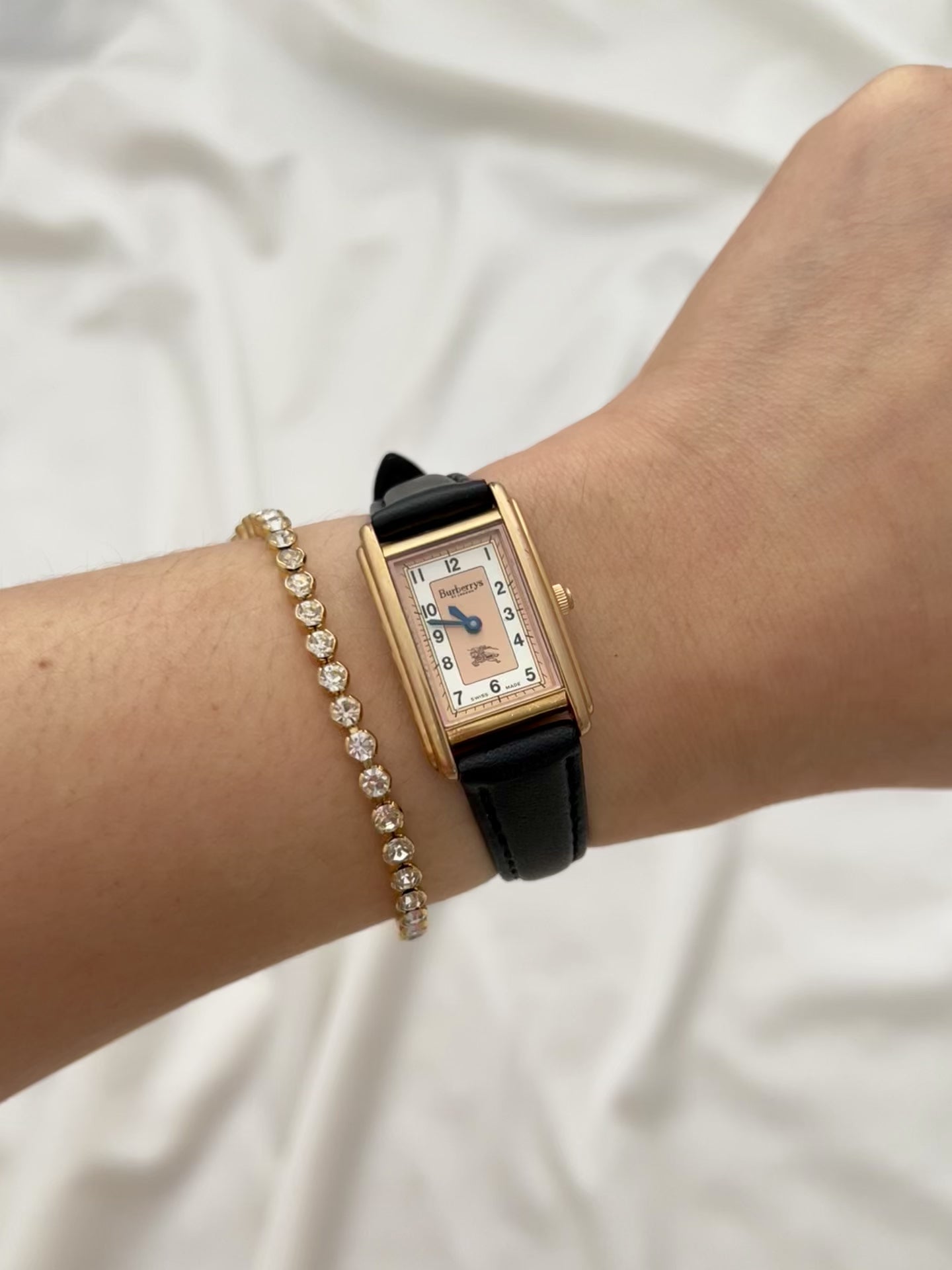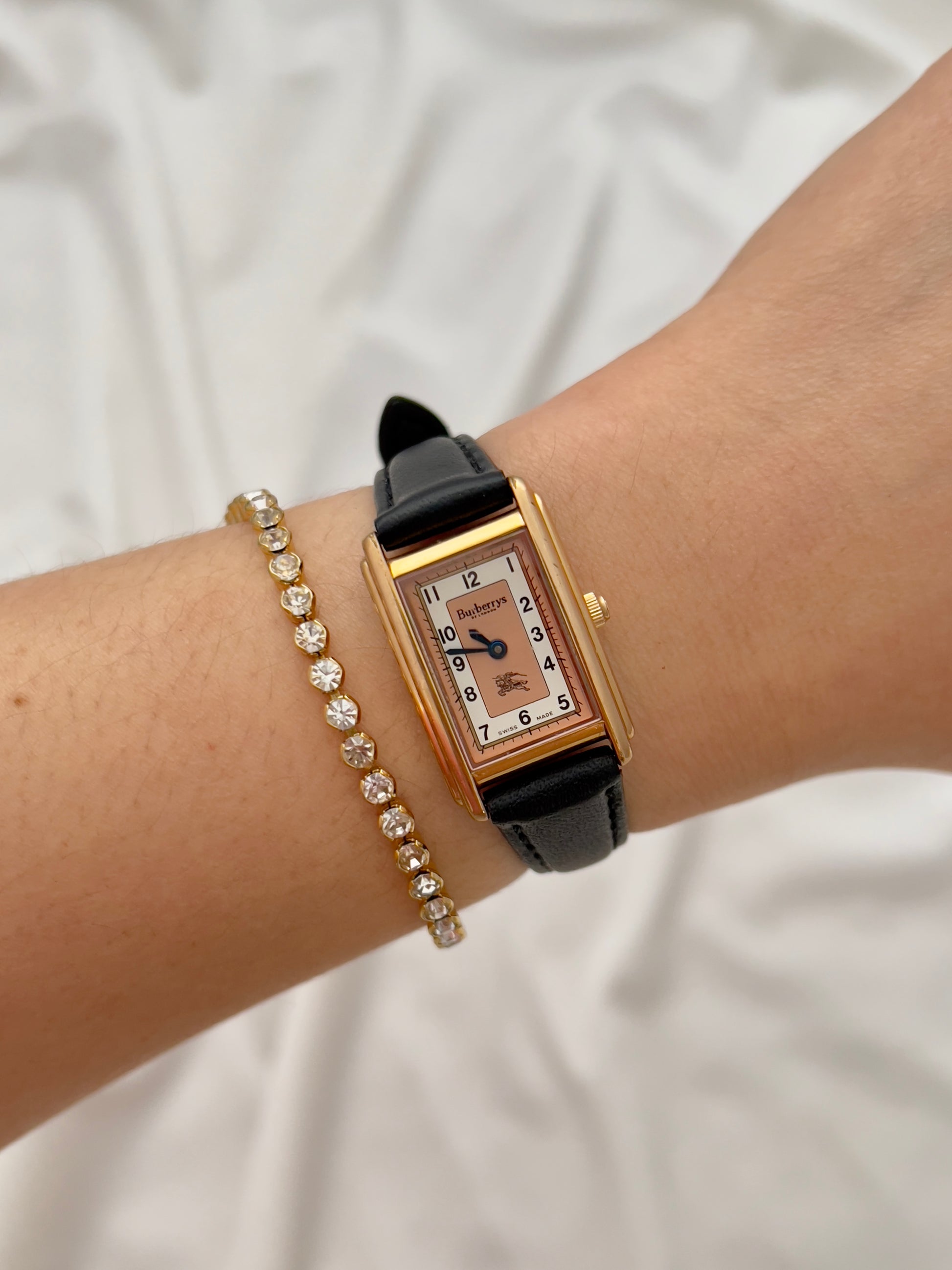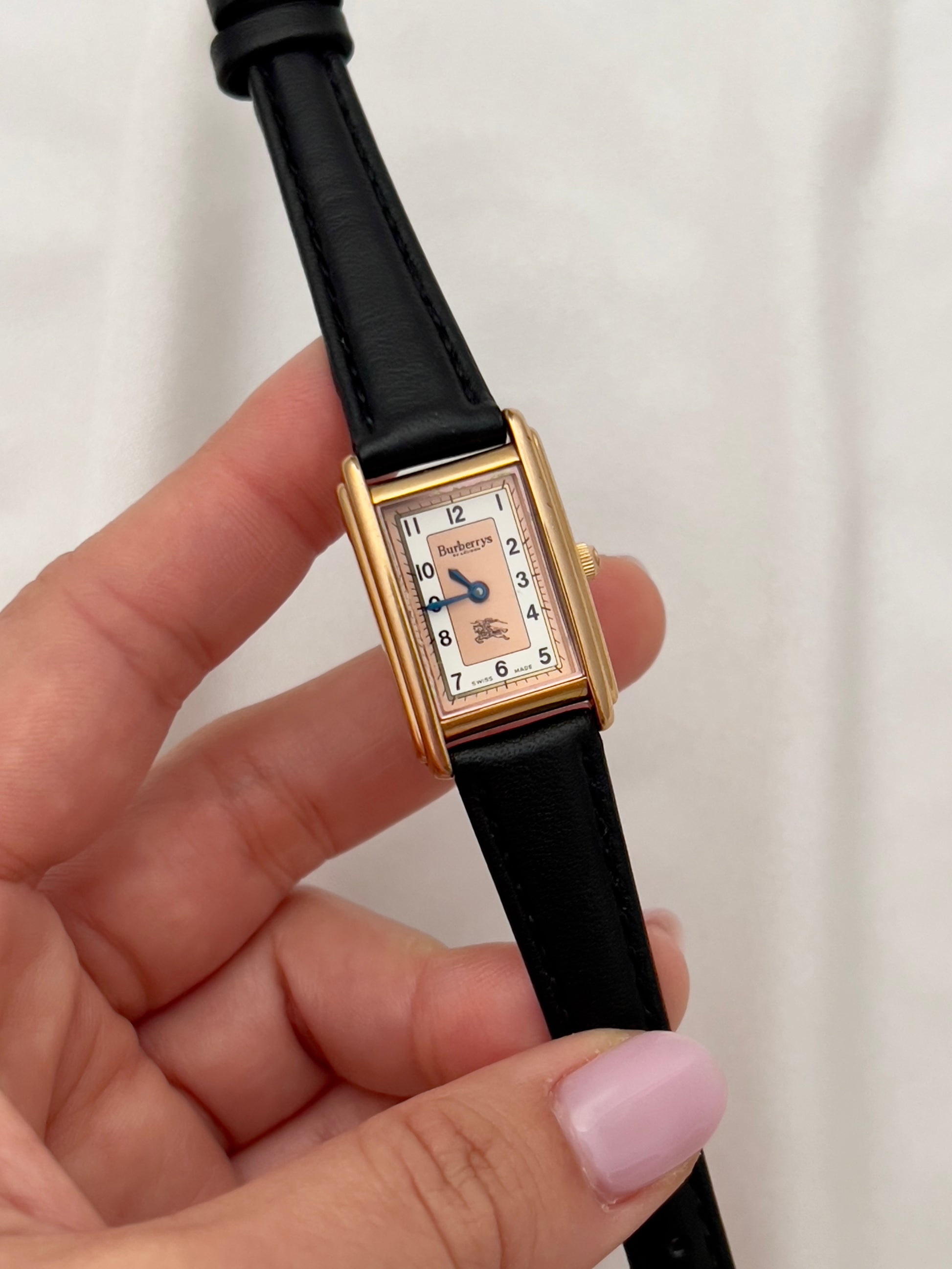 Burberrys Ladies Tank Watch – Blued Hands & Pink-White Dial