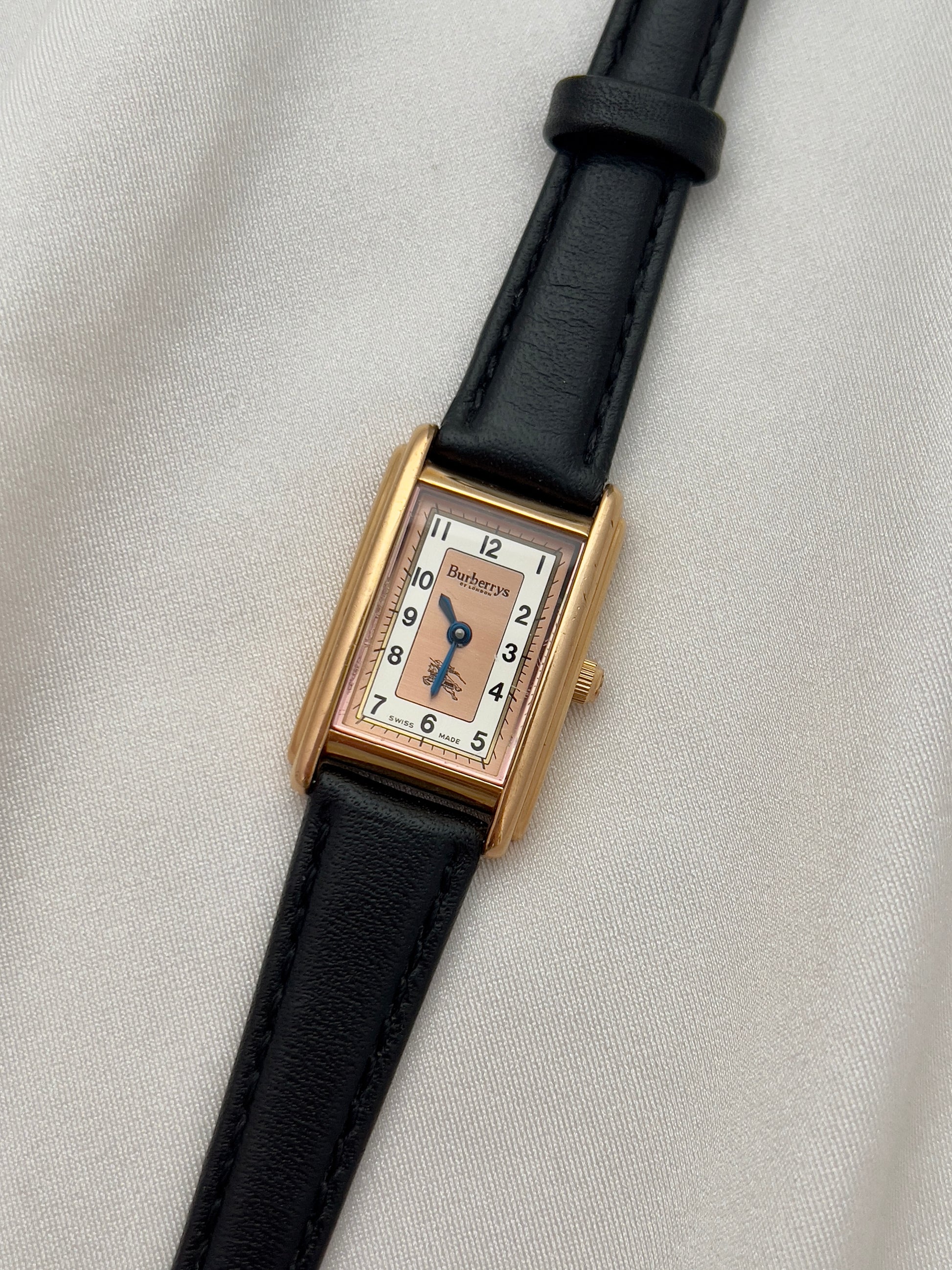 Burberrys Ladies Tank Watch – Blued Hands & Salmon-White Dial