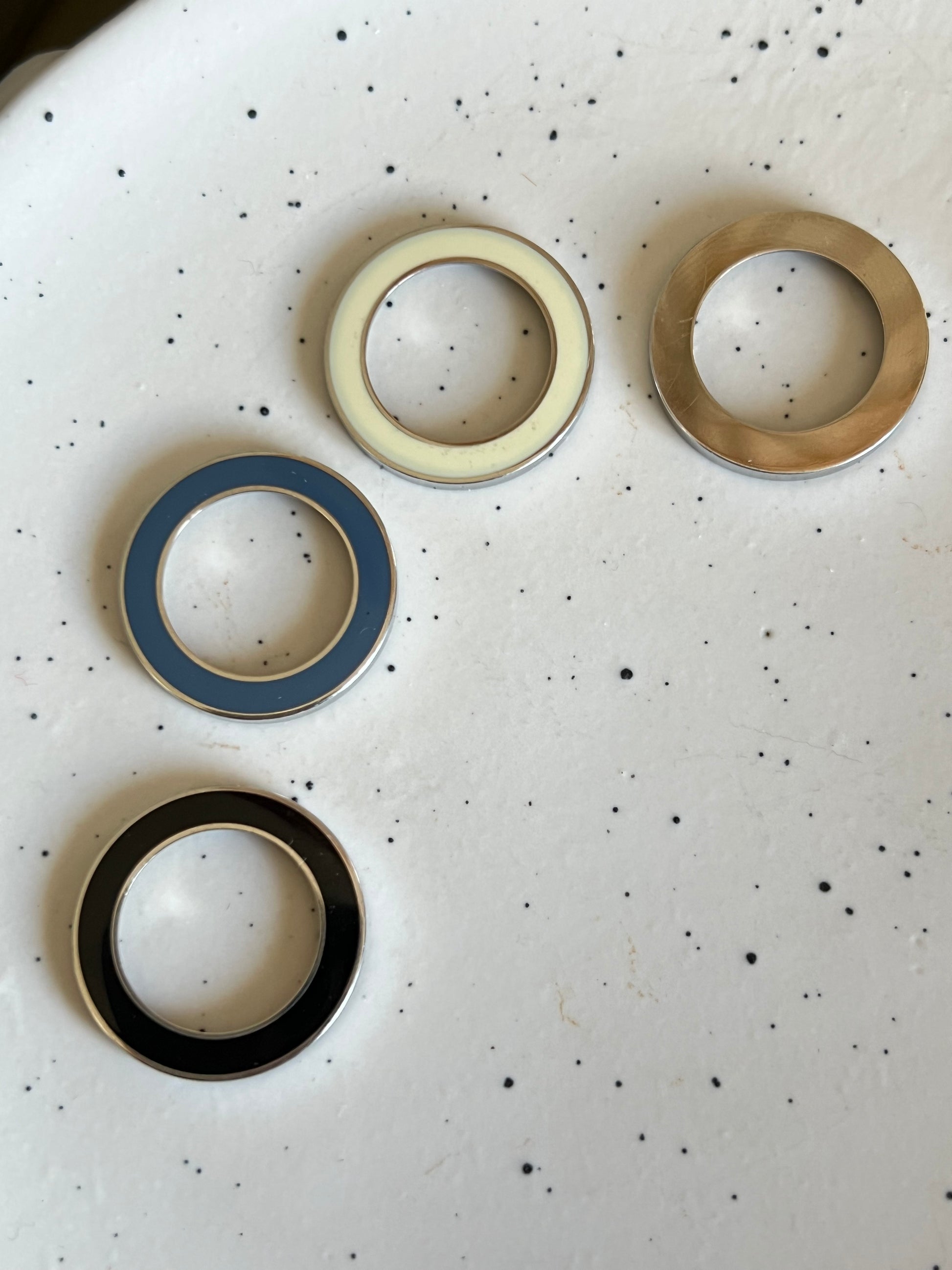 This set includes multiple bezels in elegant enamel finishes: silver, ivory, captain blue, and classic black; allowing the wearer to transform the look of the watch with ease. Whether styled for daytime polish with the ivory bezel, paired with sleek monochrome black for evening, or kept understated in silver, the watch adapts seamlessly to any occasion.