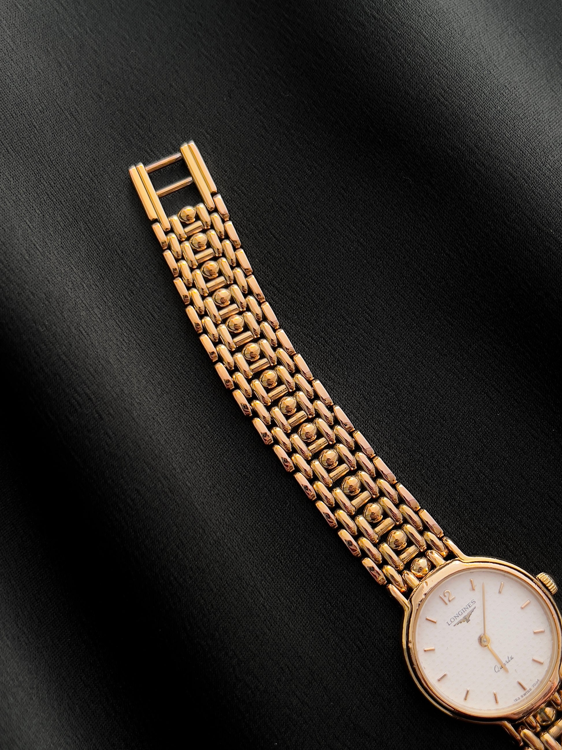 There is something irresistibly romantic about this little Longines. A circle of warm gold on the wrist, it feels more like a heirloom bracelet that happens to tell the time.