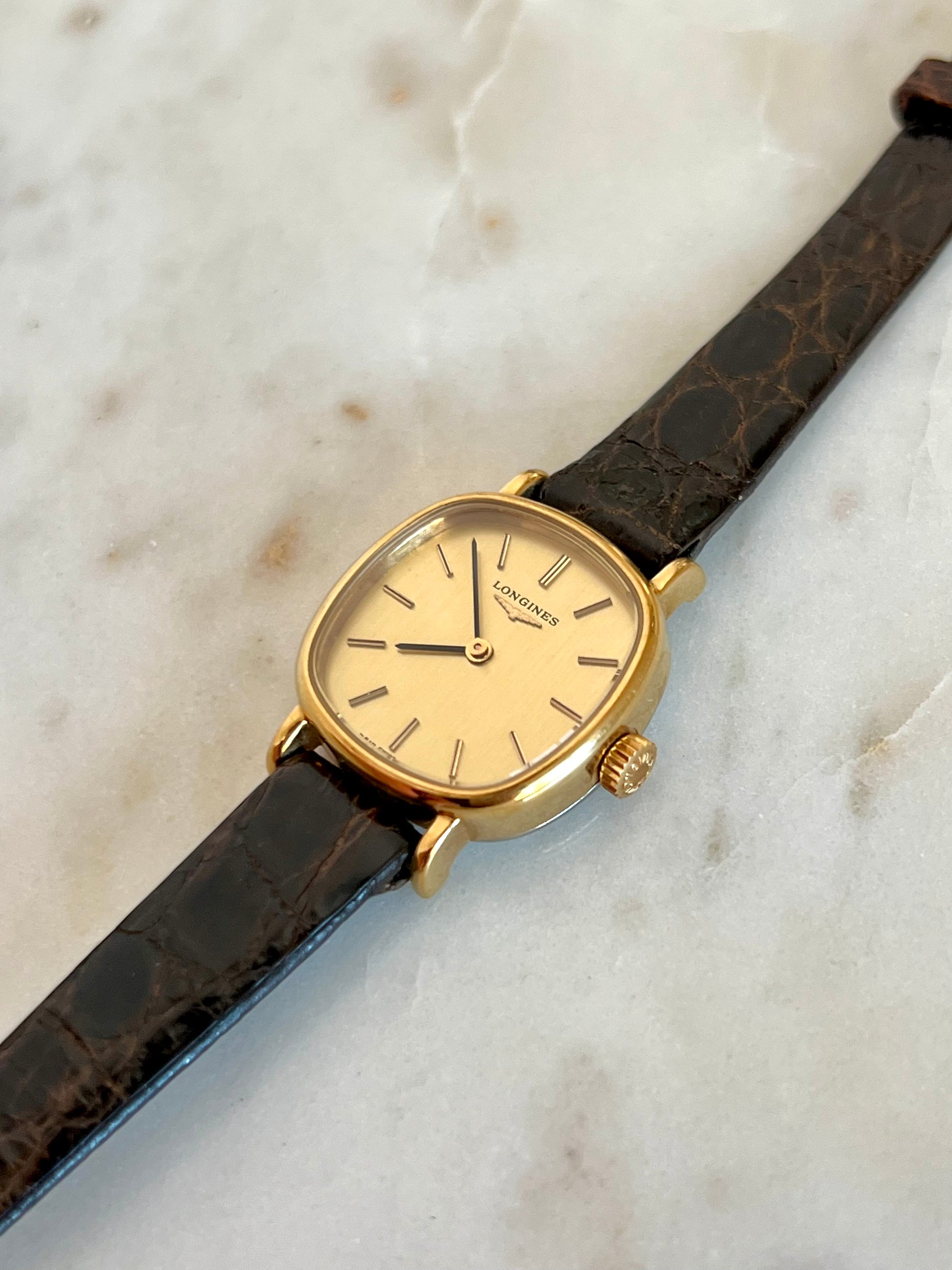 Longines Gold Tone Cushion Women's Watch with Champagne Dial