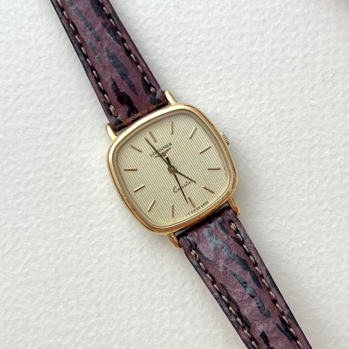 Longines Gold Toned Cushion Case Stripe Dial Woman's Watch
