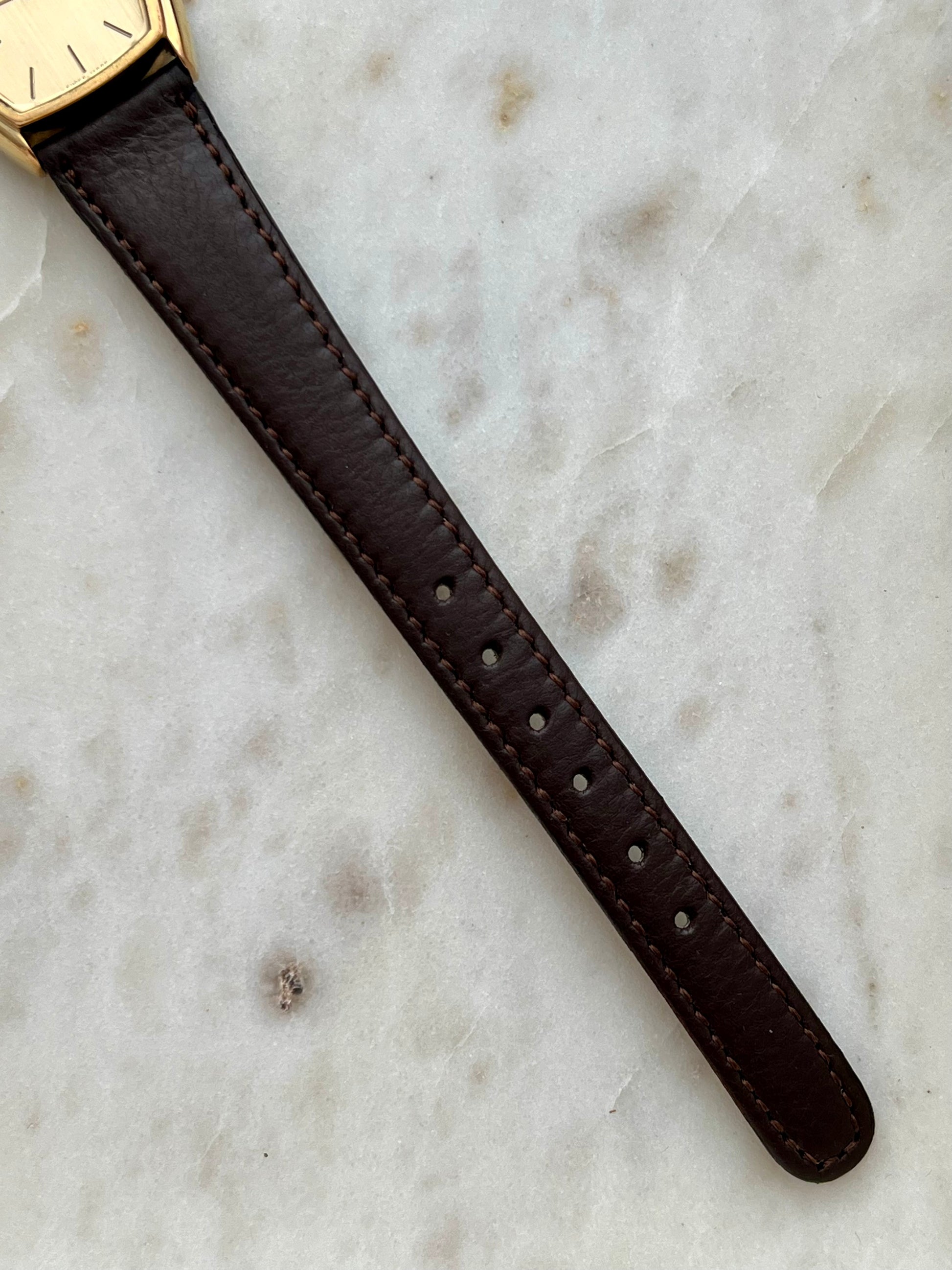 A study in restraint, this vintage Longines tonneau is the kind of piece that doesn’t chase attention, it earns it. The softly curved gold case frames a clean champagne dial with crisp baton markers and a quiet two hand layout, a design language that feels intentional, forward, and effortlessly polished.