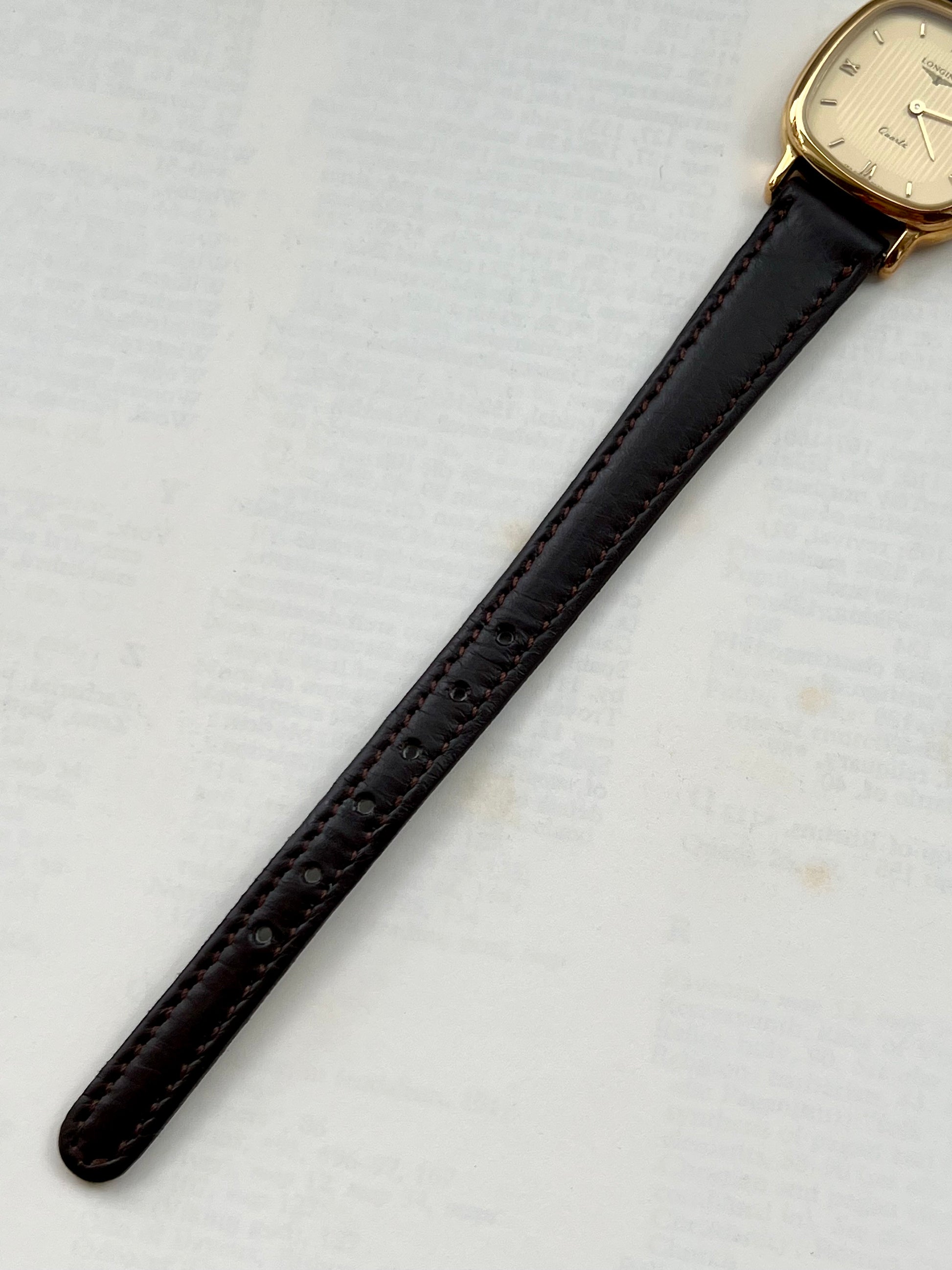 Longines Ladies Gold Cushion Watch with Champagne Stripe Dial
