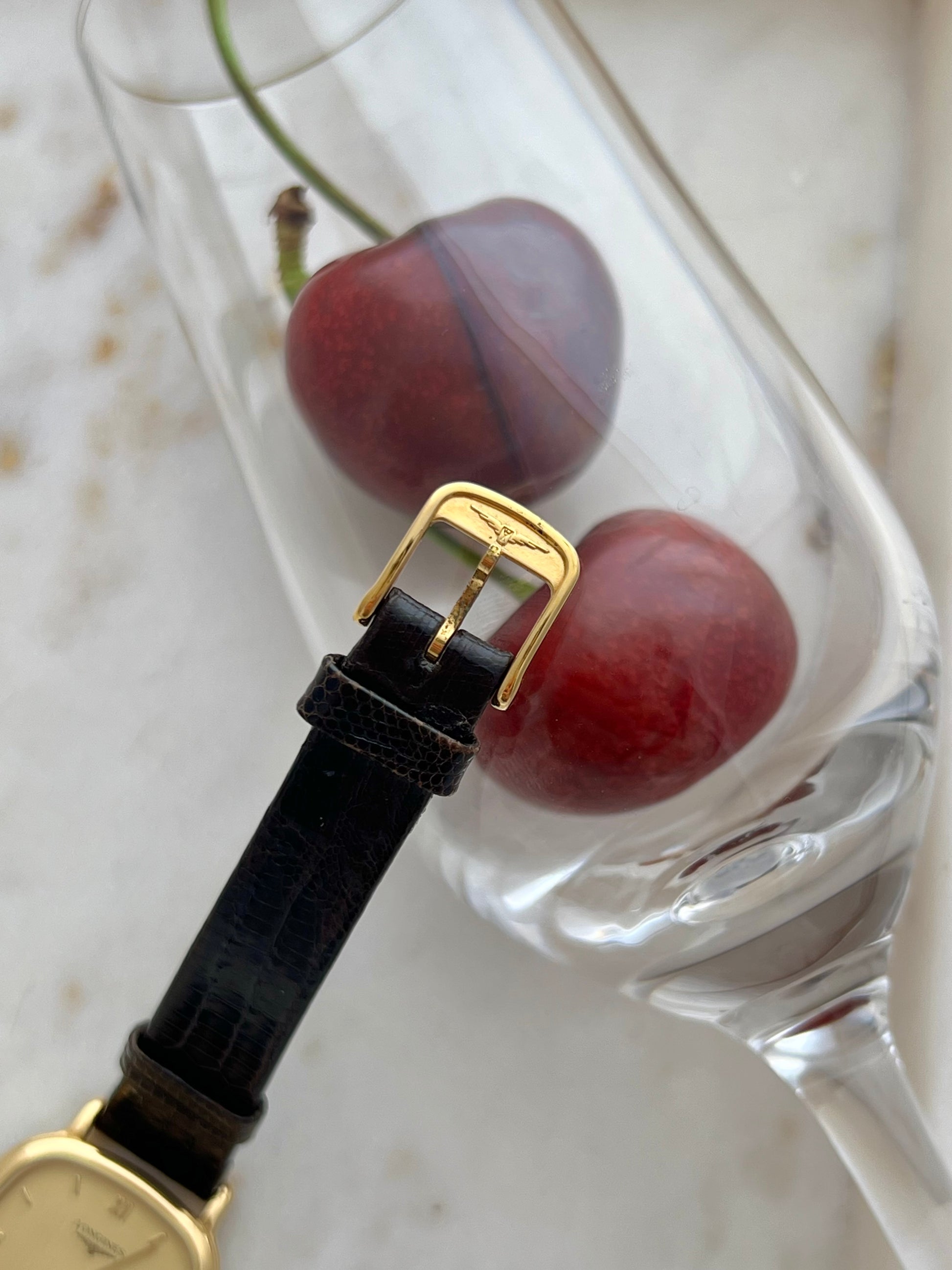 A dark chocolate leather strap frames the gold case and makes the dial glow brighter. Petite in scale and wonderfully refined, this vintage Longines wears like jewellery by day and like evening wear by night.