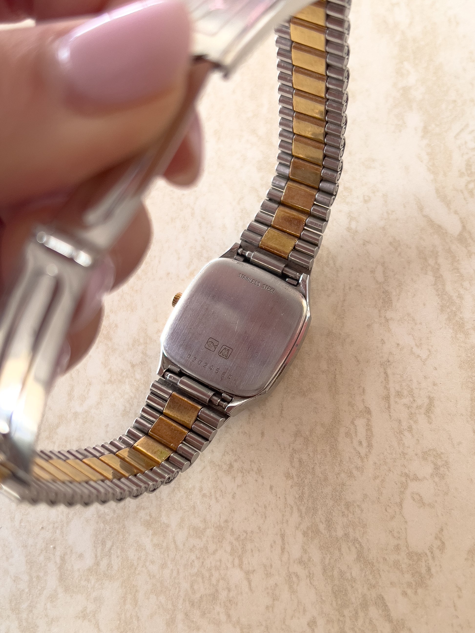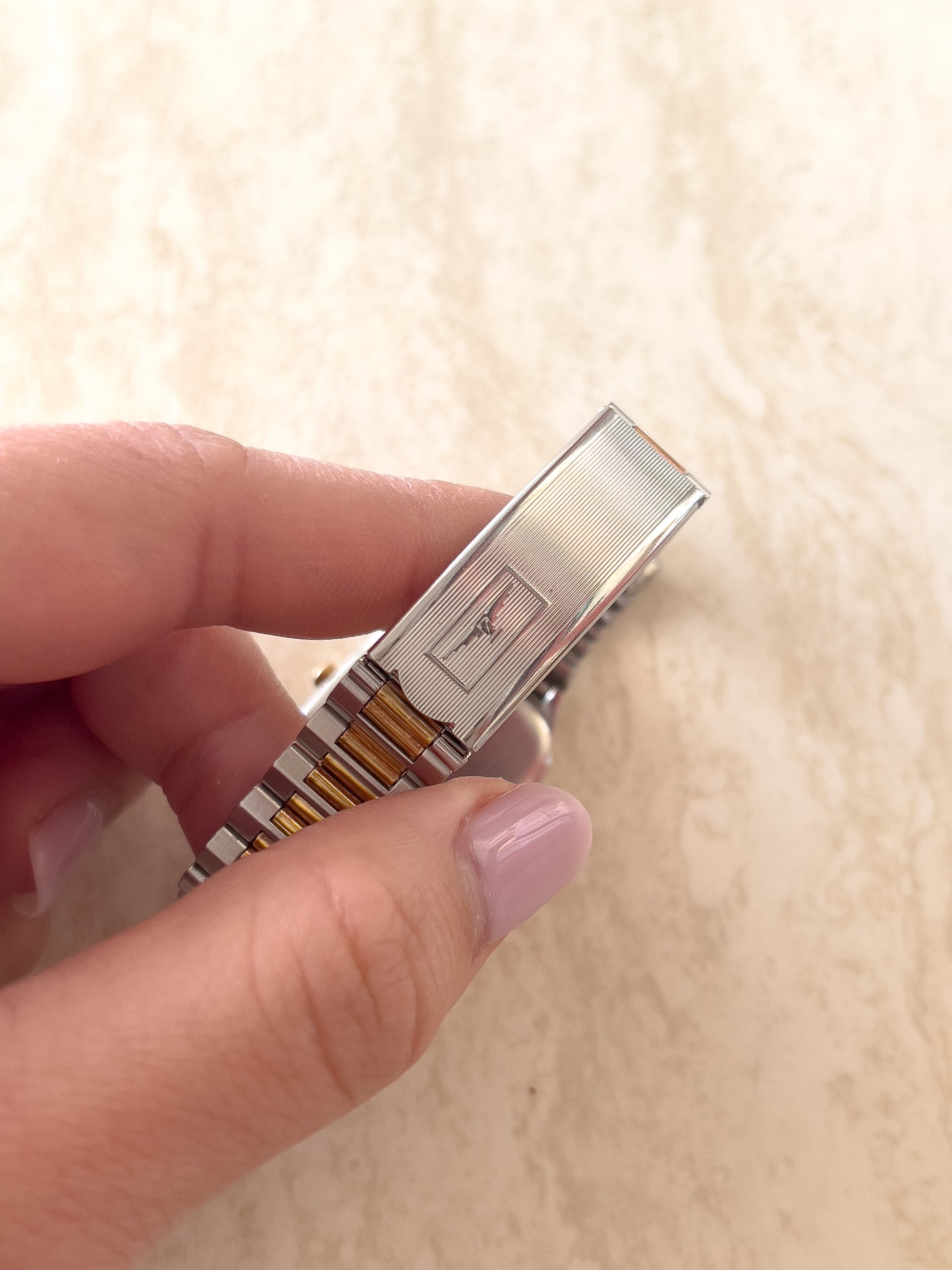 - Integrated two tone strap with an elastic feature on the signed clasp which makes wearing this piece extra comfortable