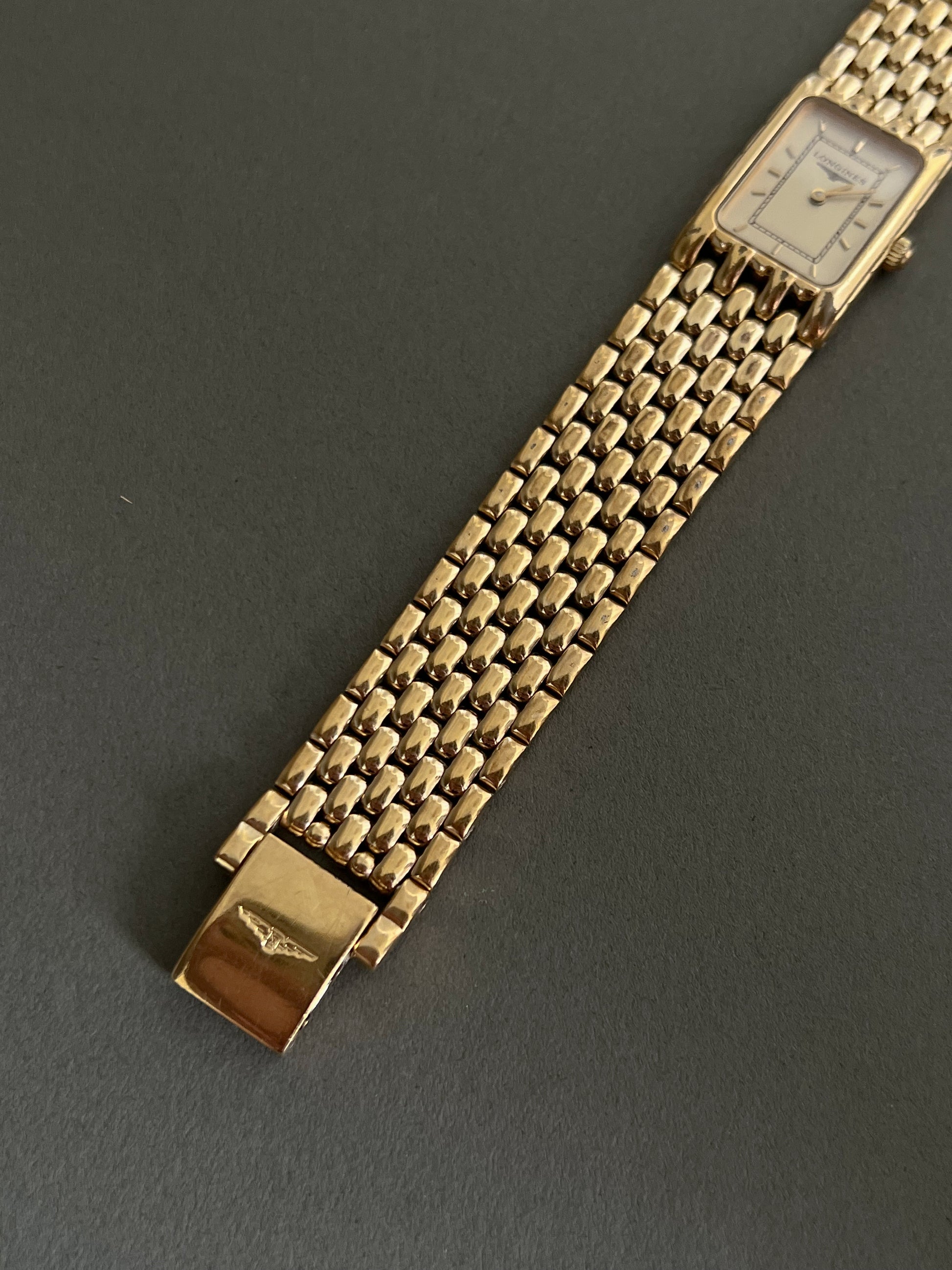 Longines Gold Ladies Tank Watch with Textured Bracelet
