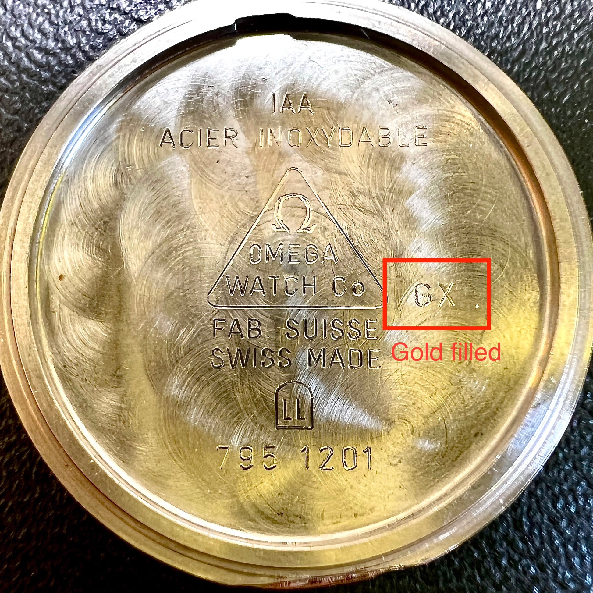 - Crown: Gold tone Omega signed crown