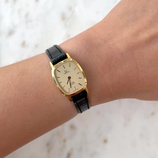 Omega De Ville Tonneau Women's Watch in Gold Tone on Black Leather