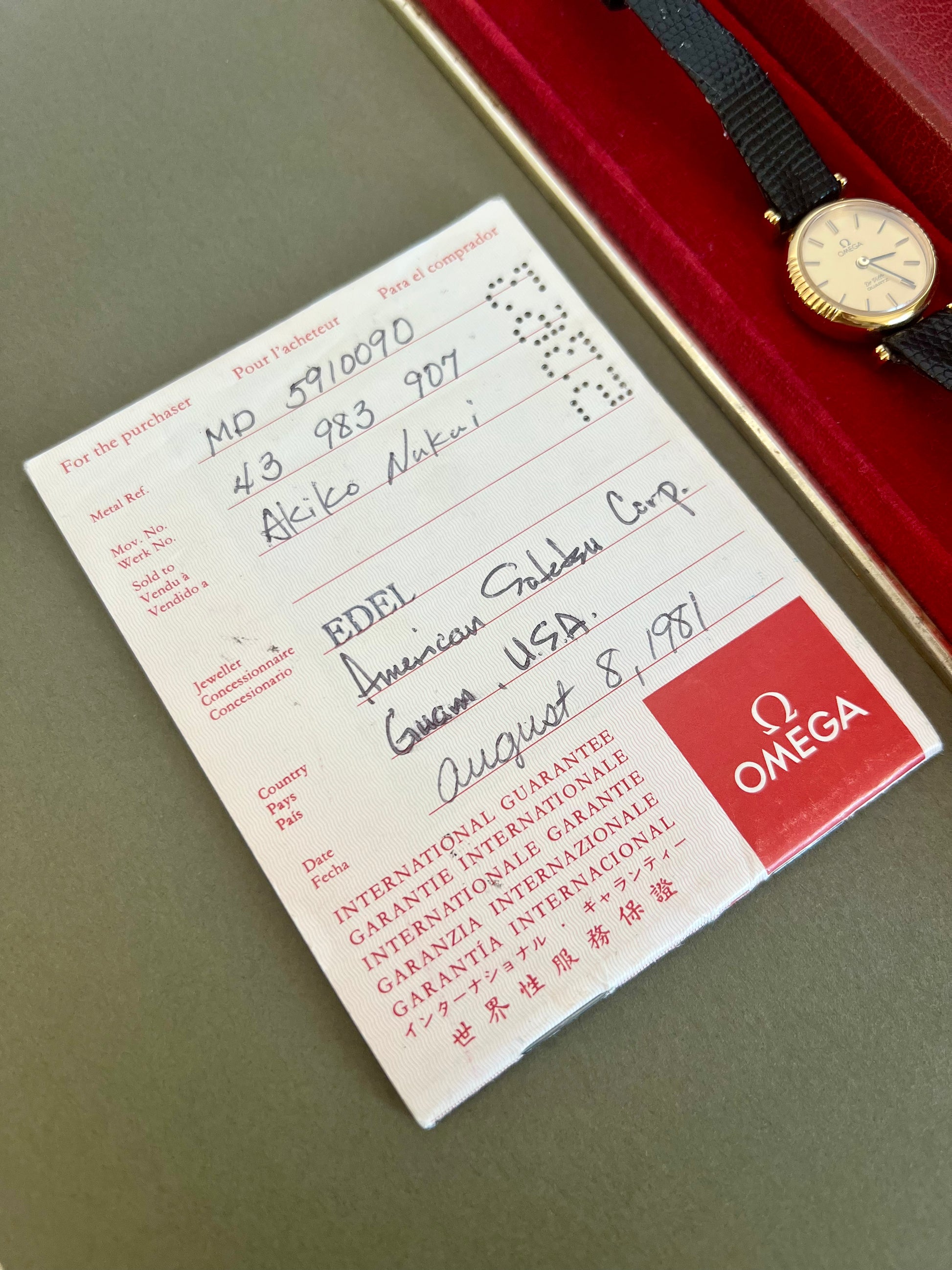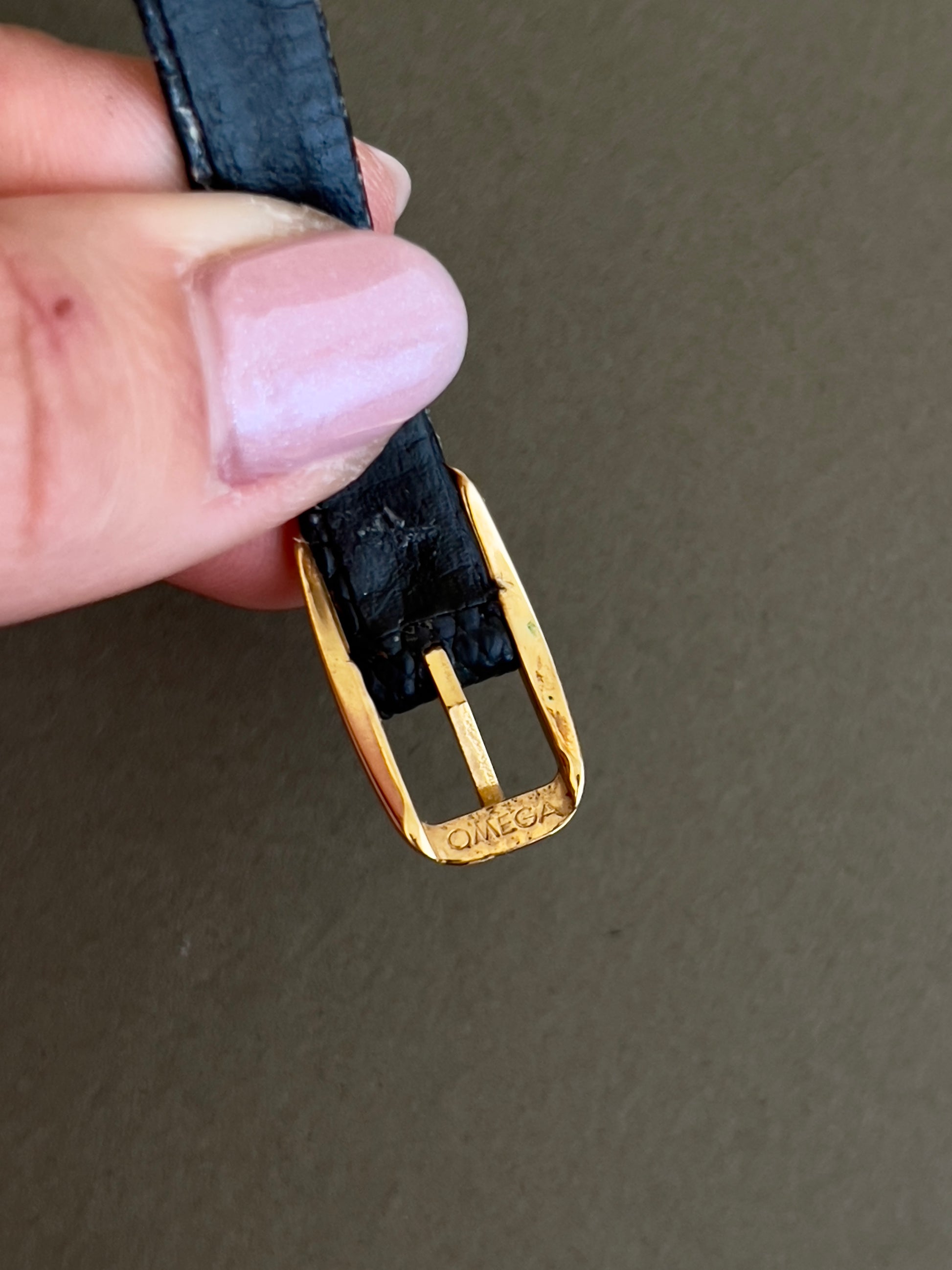This timeless classic Omega De Ville is a beautiful piece to behold. Cased in a classic round case with a subtle dotted accent, this piece is a standout amongst all pieces. Inside the case is a matte champagne dial, with golden highly polished hour markers split by black accents, with the theme continuing to the hands. Keeping it minimal, the integrated push crown gives the time piece a great symmetry and clean look. To round it all off, the lugs are in a classy bar with a ball end shape.