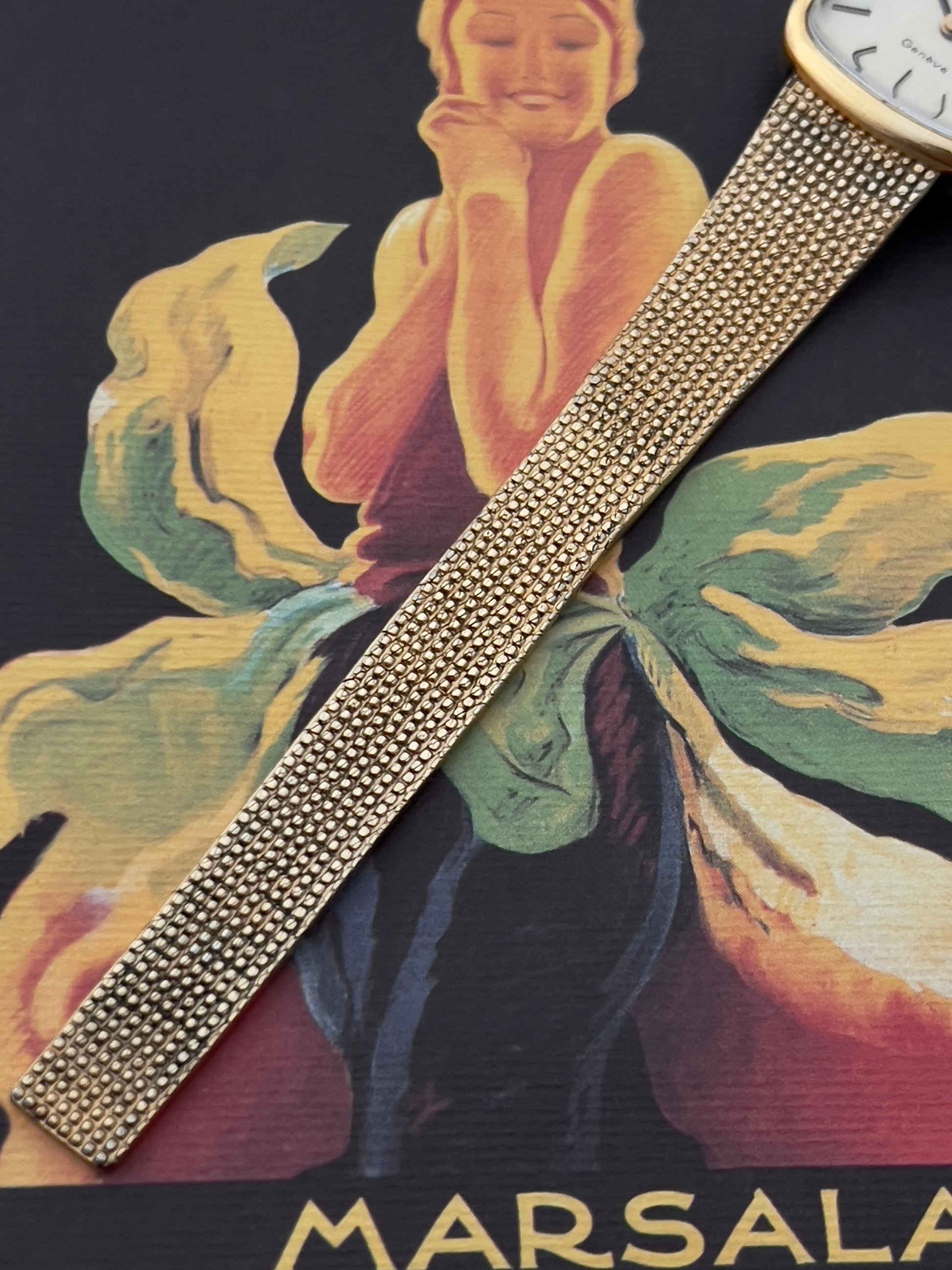 The integrated gold mesh bracelet enhances the watch’s jewellery-like appeal, draping fluidly on the wrist with a subtle sparkle in motion. More than a timepiece, this Omega Geneve is an accessory of quiet sophistication, equally at home with evening wear or as an heirloom-worthy daily companion.