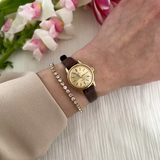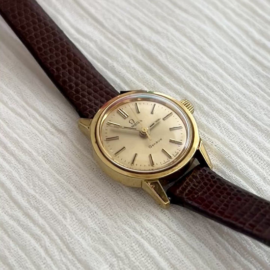Ladies Omega Geneve Gold Watch with Champagne Sunburst Dial