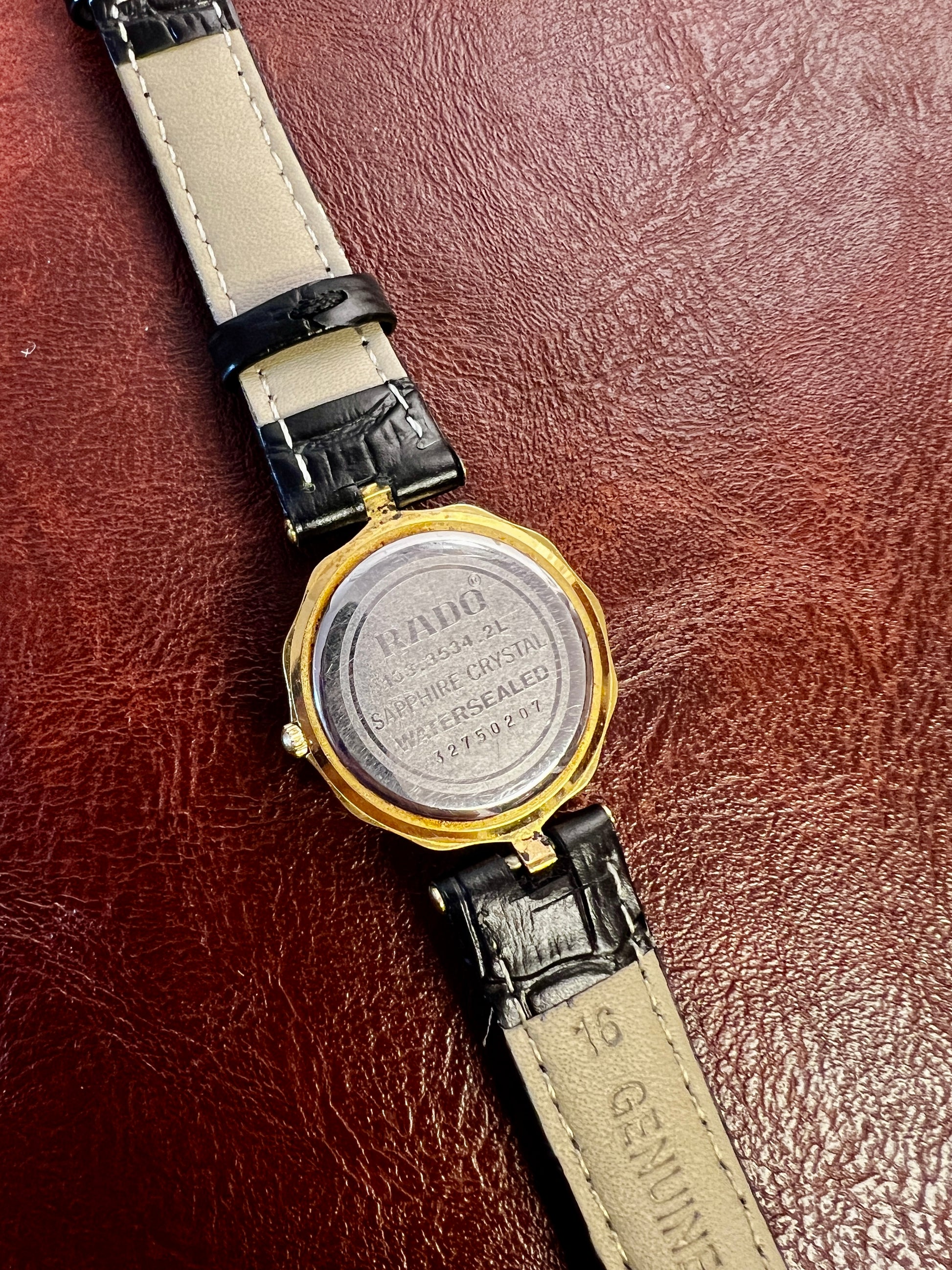 Paired with a black leather strap, this Rado is a refined expression of Swiss artistry, a timepiece that feels as much like a jewel as it does a watch, perfect for collectors and lovers of design-driven vintage pieces.