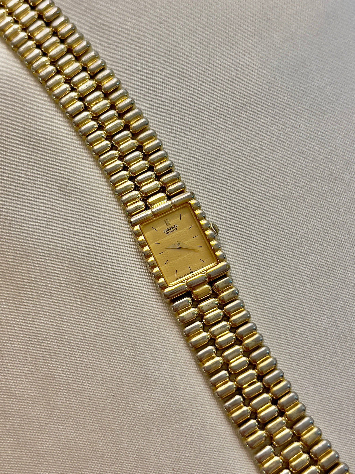 Seiko Tank Women's Watch with Rice Bracelet & Unique Bamboo Pattern