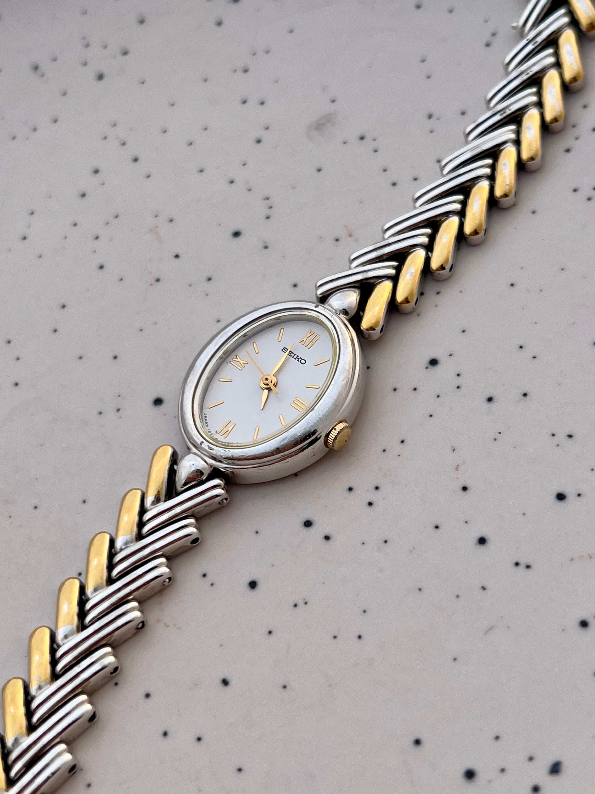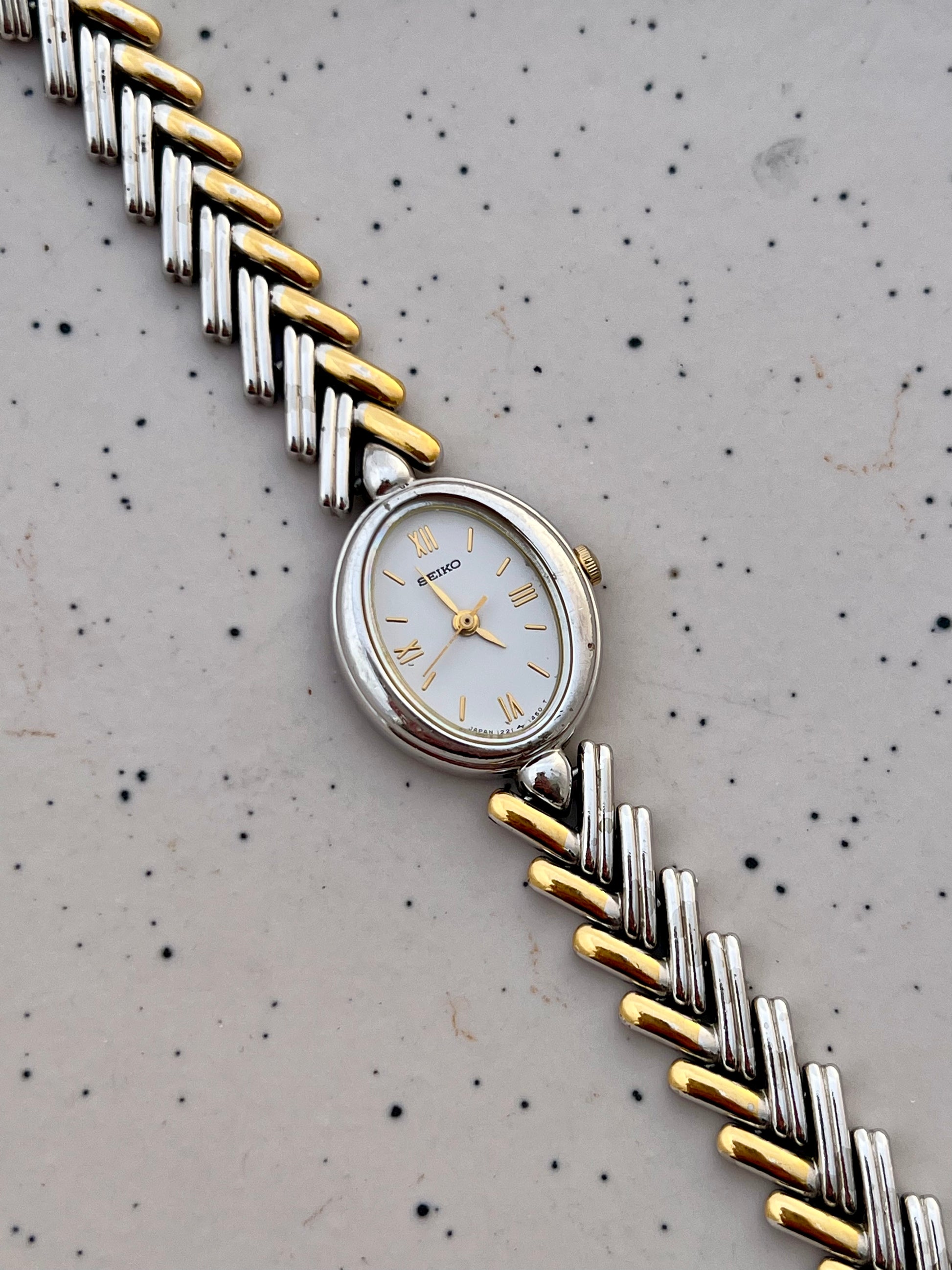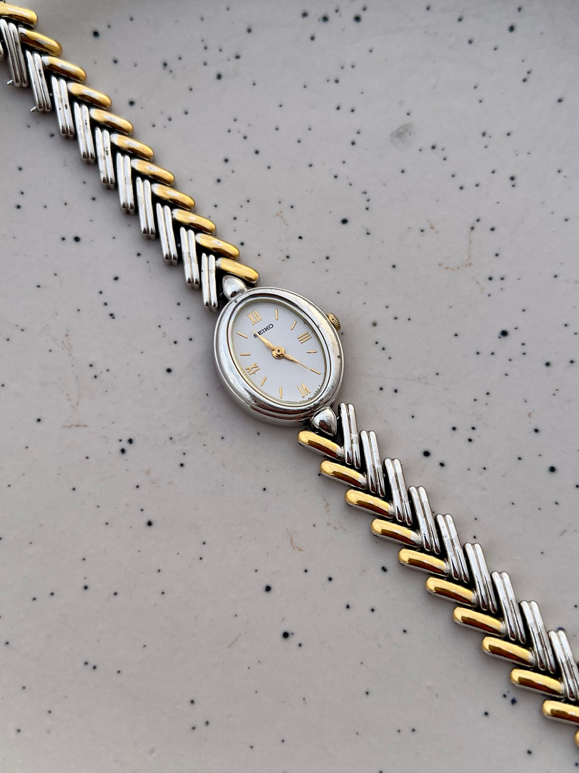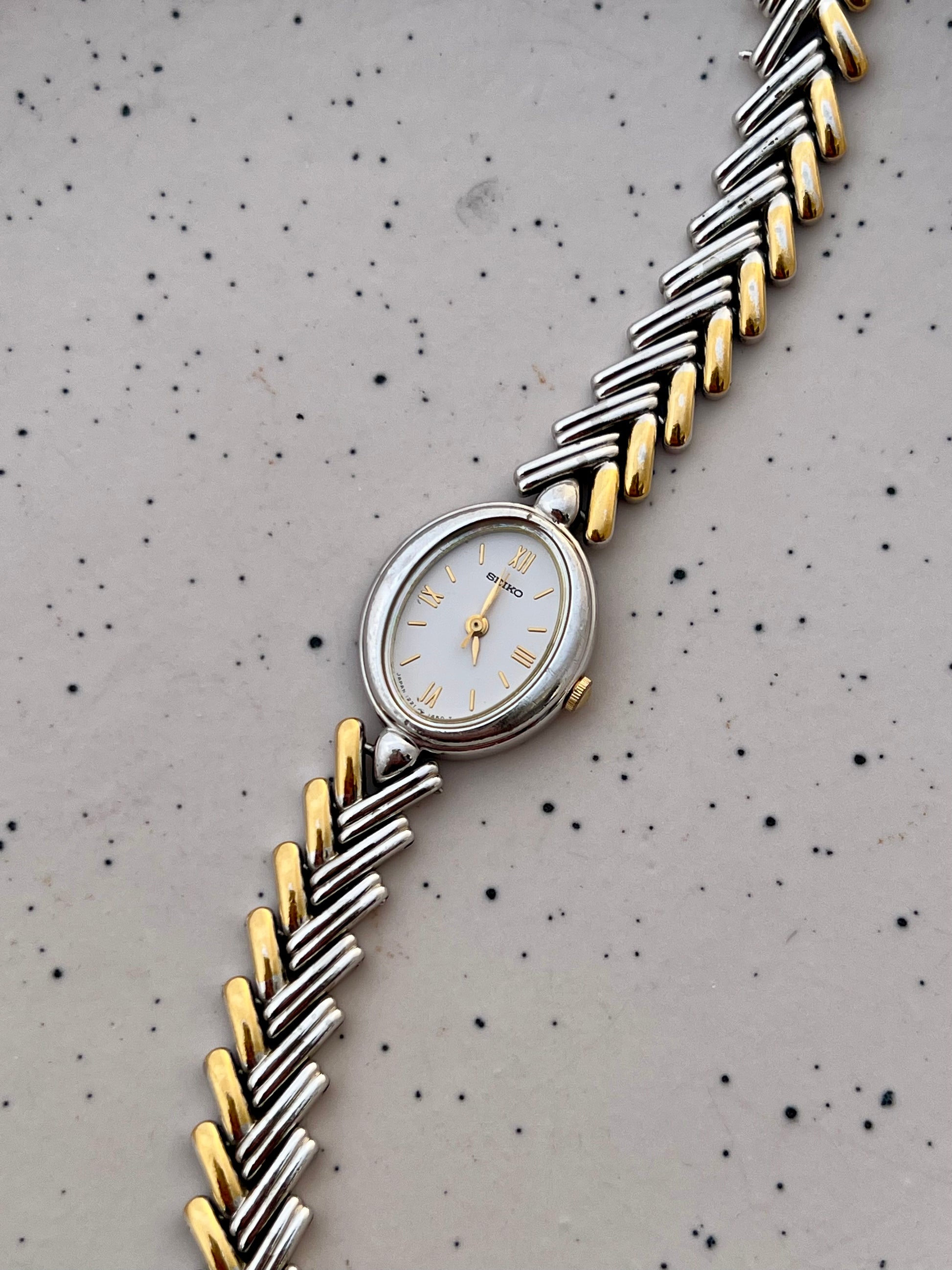 Seiko Ladies Two Tone Oval Herringbone Bracelet Watch