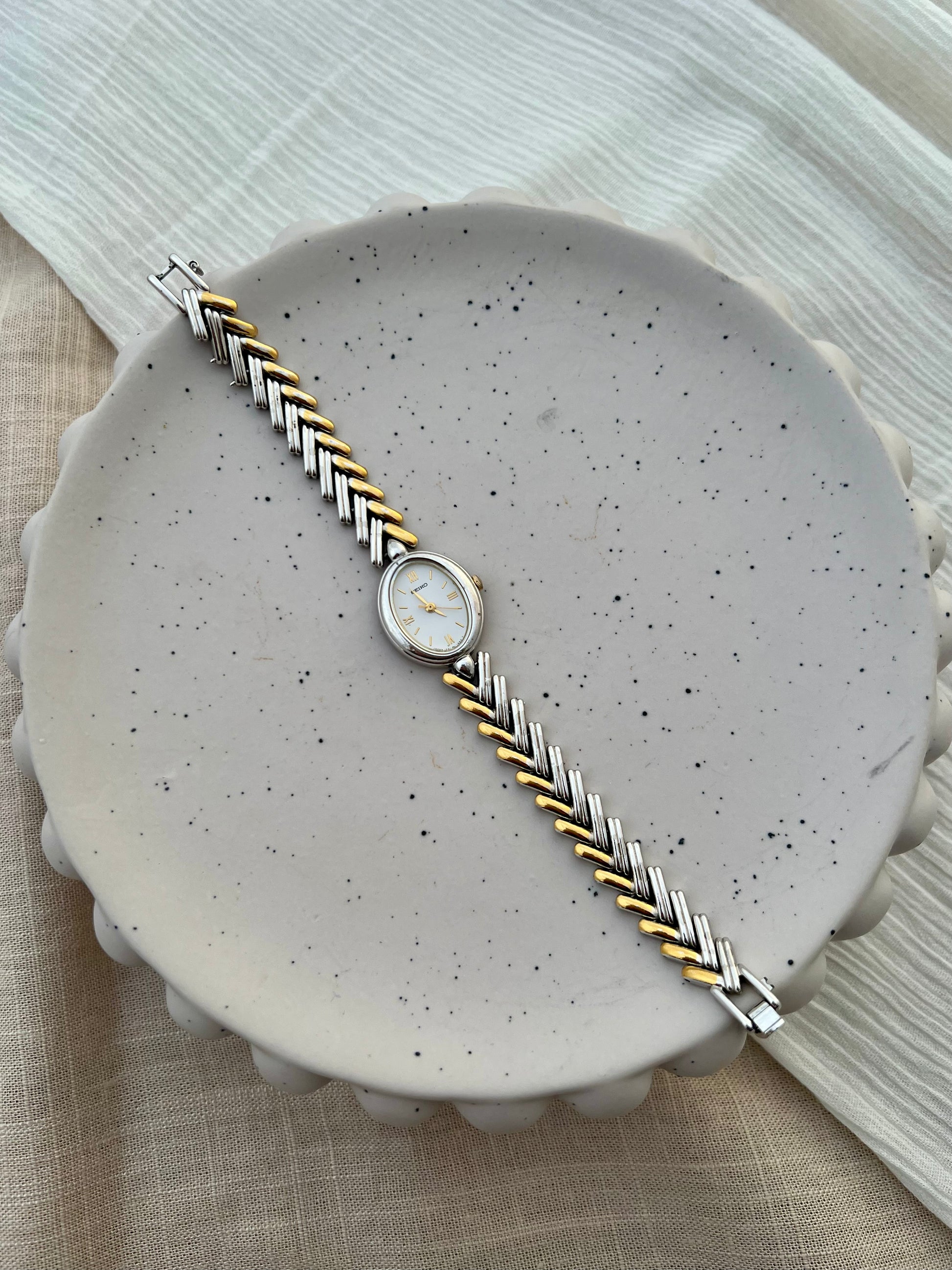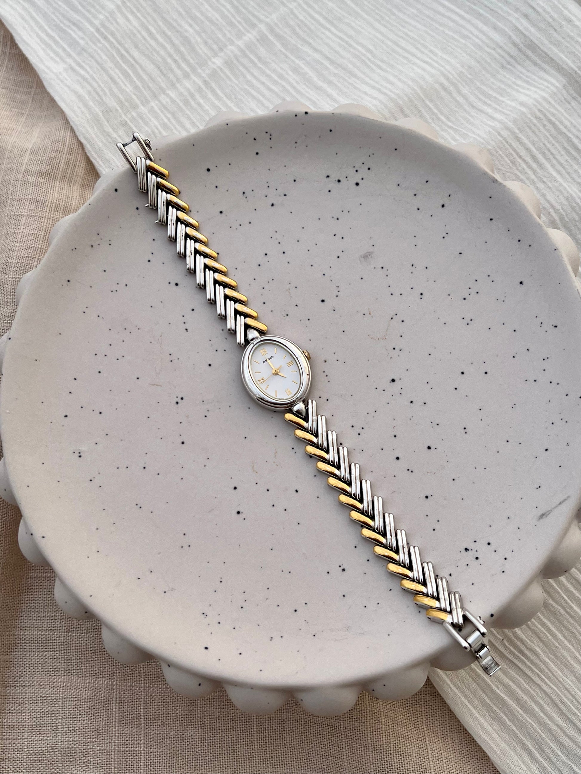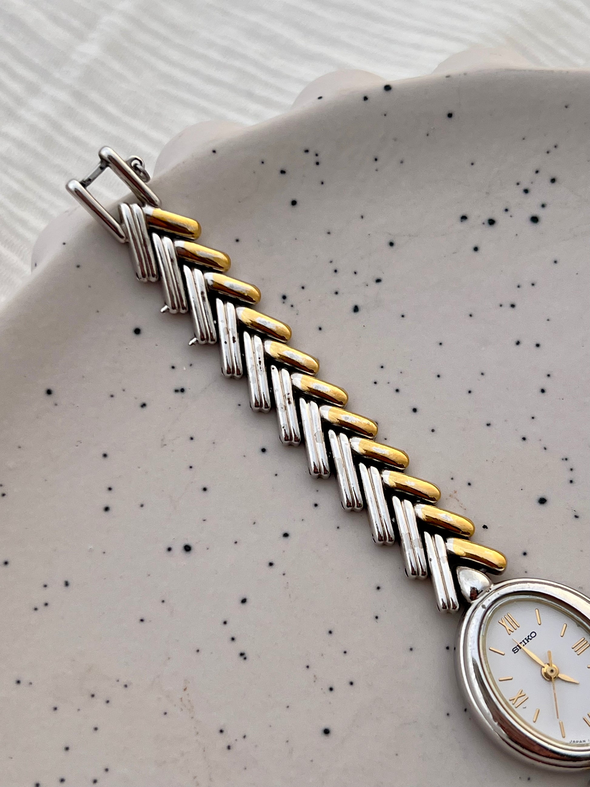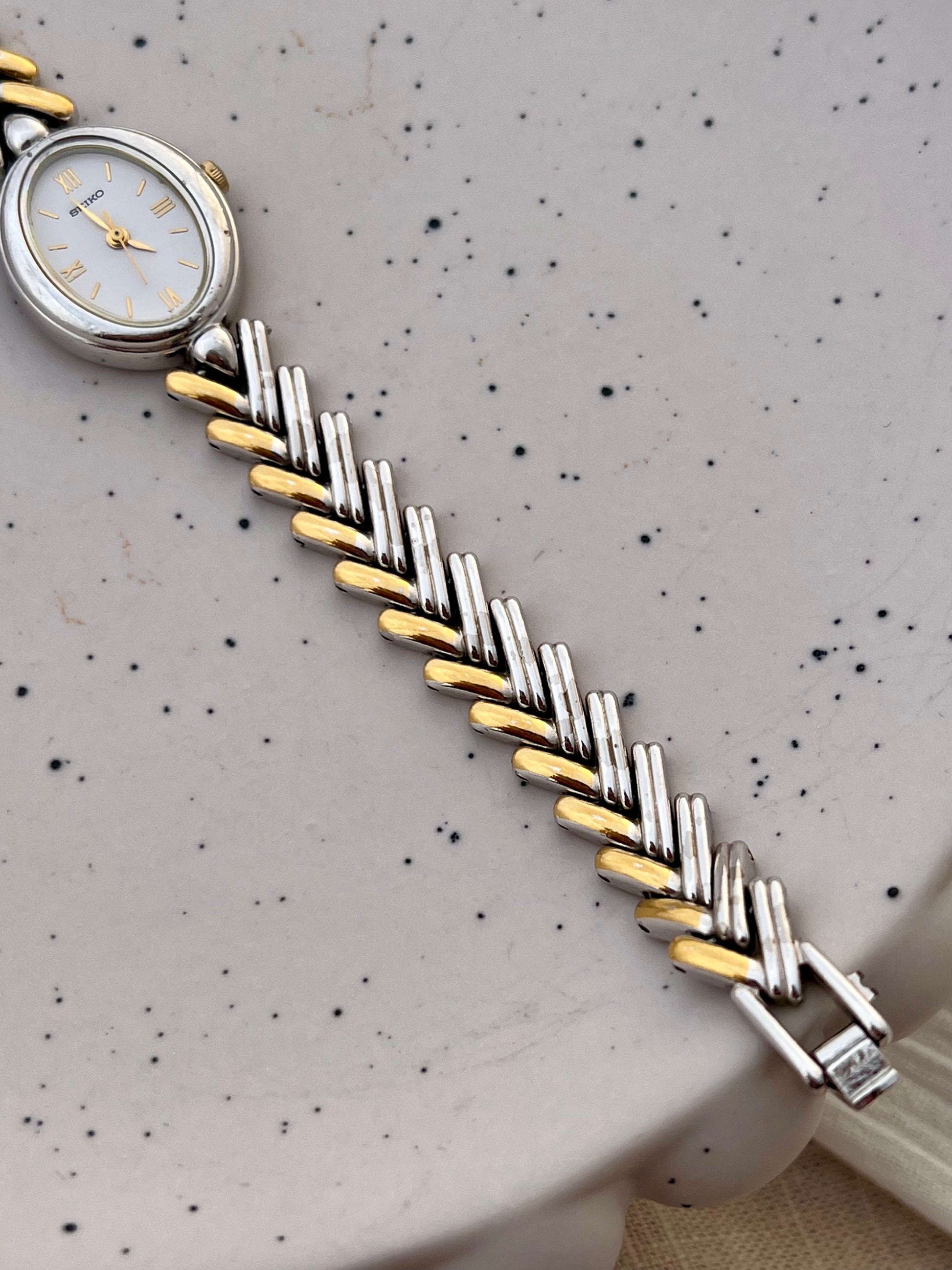 Seiko Ladies Two Tone Oval Herringbone Bracelet Watch